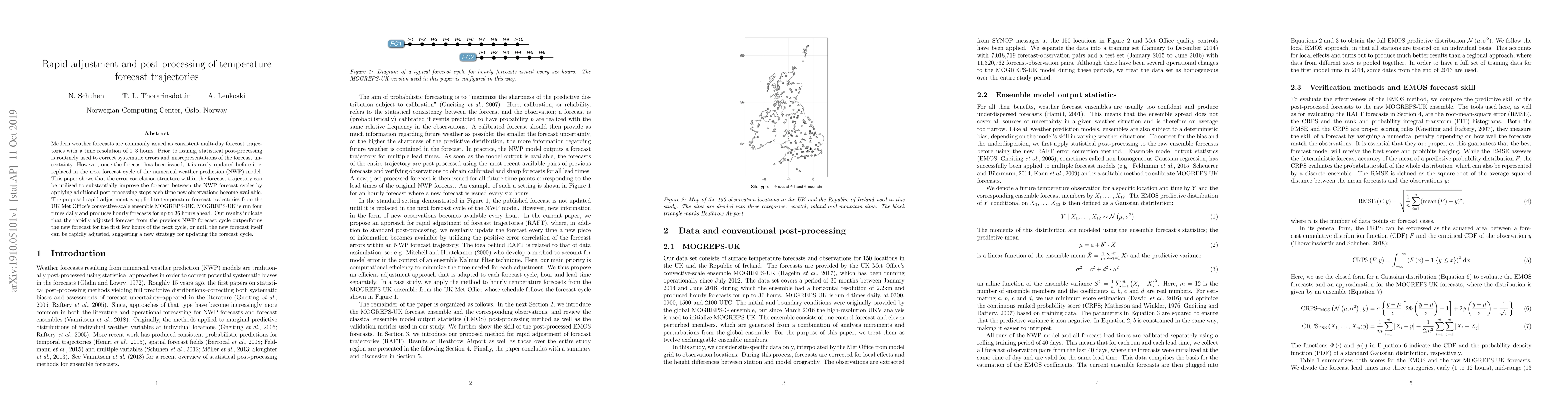 Modern weather forecasts are commonly issued as consistent multi-day forecast trajectories with a time resolution of 1-3 hours. Prior to issuing, statistical post-processing is routinely used to correct systematic errors and misrepresentations of the forecast uncertainty. However, once the forecast has been issued, it is rarely updated before it is replaced in the next forecast cycle of the numerical weather prediction (NWP) model. This paper shows that the error correlation structure within the forecast trajectory can be utilized to substantially improve the forecast between the NWP forecast cycles by applying additional post-processing steps each time new observations become available. The proposed rapid adjustment is applied to temperature forecast trajectories from the UK Met Office's convective-scale ensemble MOGREPS-UK. MOGREPS-UK is run four times daily and produces hourly forecasts for up to 36 hours ahead. Our results indicate that the rapidly adjusted forecast from the previous NWP forecast cycle outperforms the new forecast for the first few hours of the next cycle, or until the new forecast itself can be rapidly adjusted, suggesting a new strategy for updating the forecast cycle.