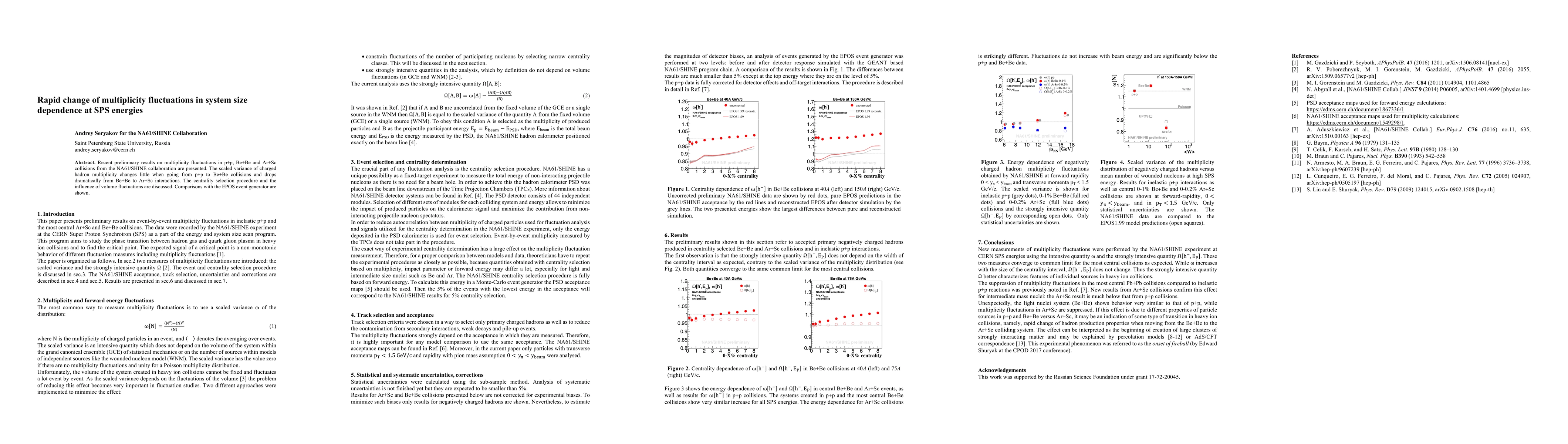 Recent preliminary results on multiplicity fluctuations in p+p, Be+Be and Ar+Sc collisions from the NA61/SHINE collaboration are presented. The scaled variance of charged hadron multiplicity changes little when going from p+p to Be+Be collisions and drops dramatically from Be+Be to Ar+Sc interactions. The centrality selection procedure and the influence of volume fluctuations are discussed. Comparisons with the EPOS event generator are shown.