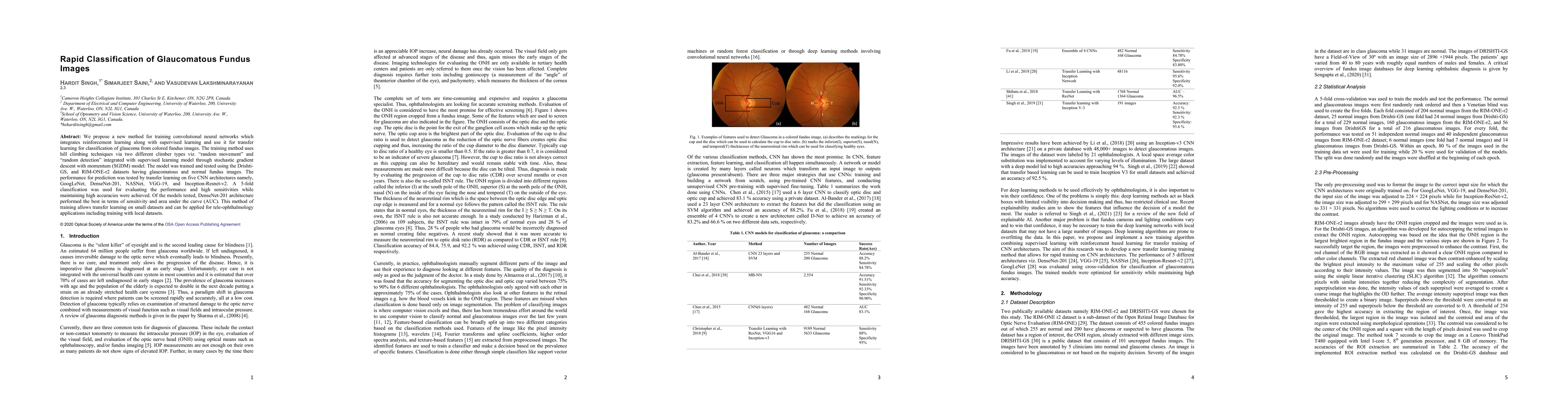 A new method for training convolutional neural networks using reinforcement learning and supervised learning is proposed for classifying glaucoma from fundus images with high accuracy and sensitivity. The approach allows for transfer learning on small datasets and has implications for tele-ophthalmology applications.