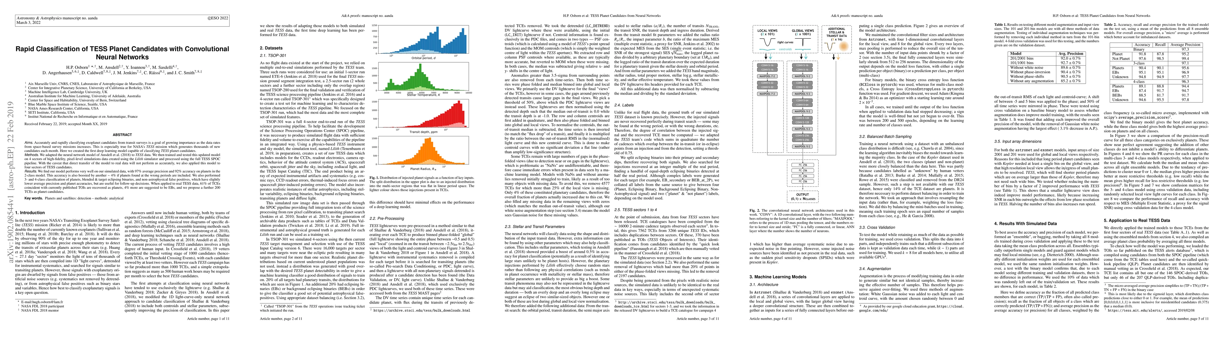 This paper presents a convolutional neural network model for rapidly classifying exoplanet candidates from NASA's TESS mission, achieving high precision and accuracy on simulated data. The model successfully identifies planets, blended binaries, and false positives, and shows promising results when applied to real TESS data, suggesting additional planet candidates.