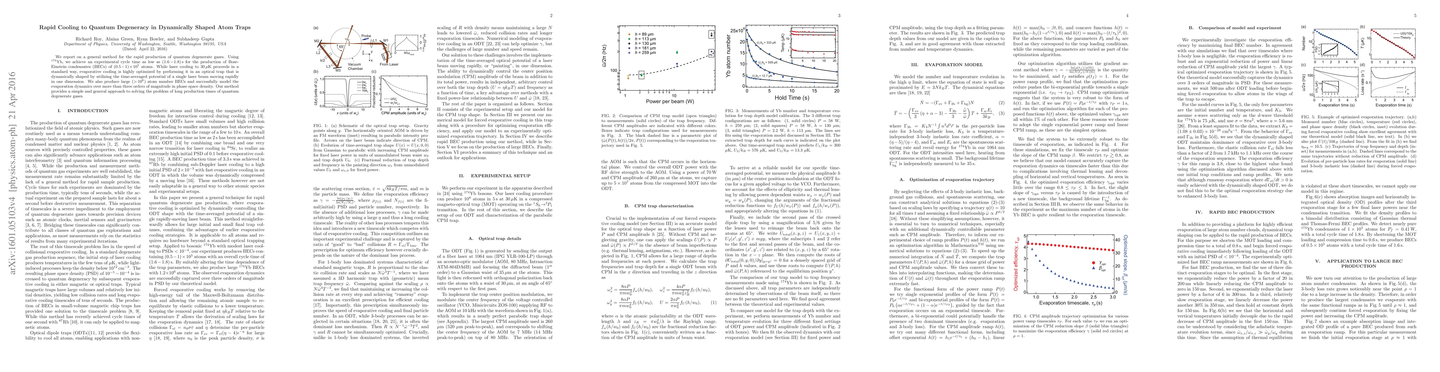 We report on a general method for the rapid production of quantum degenerate gases. Using 174Yb, we achieve an experimental cycle time as low as (1.6-1.8) s for the production of Bose-Einstein condensates (BECs) of (0.5-1) x 10^5 atoms. While laser cooling to 30\muK proceeds in a standard way, evaporative cooling is highly optimized by performing it in an optical trap that is dynamically shaped by utilizing the time-averaged potential of a single laser beam moving rapidly in one dimension. We also produce large (>10^6) atom number BECs and successfully model the evaporation dynamics over more than three orders of magnitude in phase space density. Our method provides a simple and general approach to solving the problem of long production times of quantum degenerate gases.
