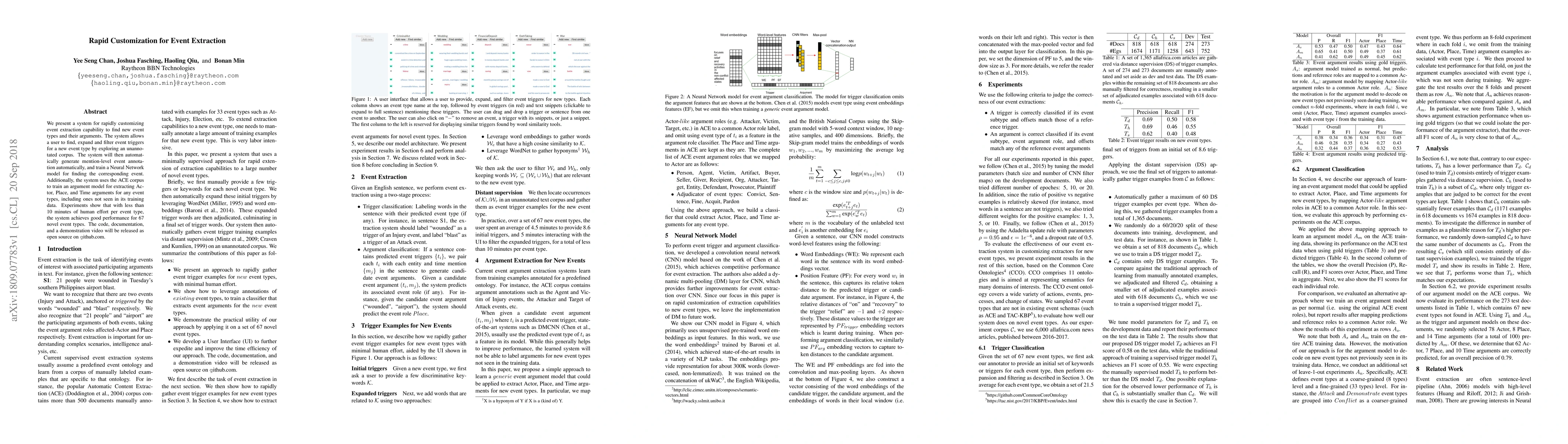 A system was developed to rapidly customize event extraction for new event types, achieving good performance with less than 10 minutes of human effort per type.
