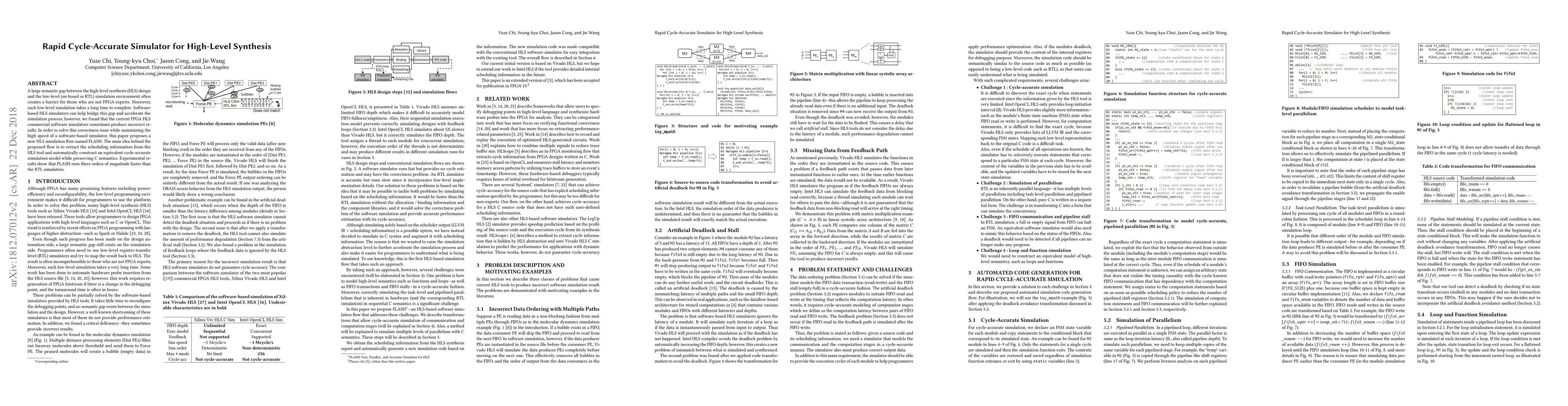 This paper proposes FLASH, a rapid cycle-accurate simulator for high-level synthesis (HLS) that bridges the semantic gap between HLS design and low-level simulation, addressing the speed and correctness issues of existing commercial simulators. FLASH extracts scheduling information to construct an equivalent cycle-accurate model, achieving three orders of magnitude faster simulation than RTL simulation.