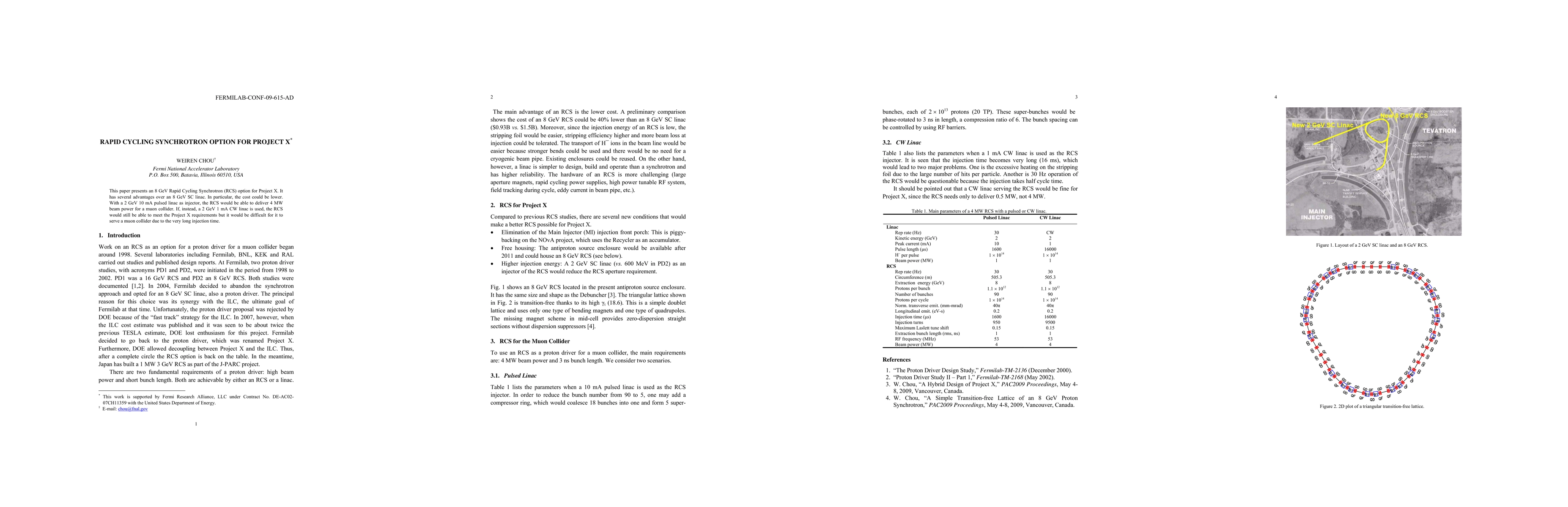 This paper presents an 8 GeV Rapid Cycling Synchrotron (RCS) option for Project X. It has several advantages over an 8 GeV SC linac. In particular, the cost could be lower. With a 2 GeV 10 mA pulsed linac as injector, the RCS would be able to deliver 4 MW beam power for a muon collider. If, instead, a 2 GeV 1 mA CW linac is used, the RCS would still be able to meet the Project X requirements but it would be difficult for it to serve a muon collider due to the very long injection time.