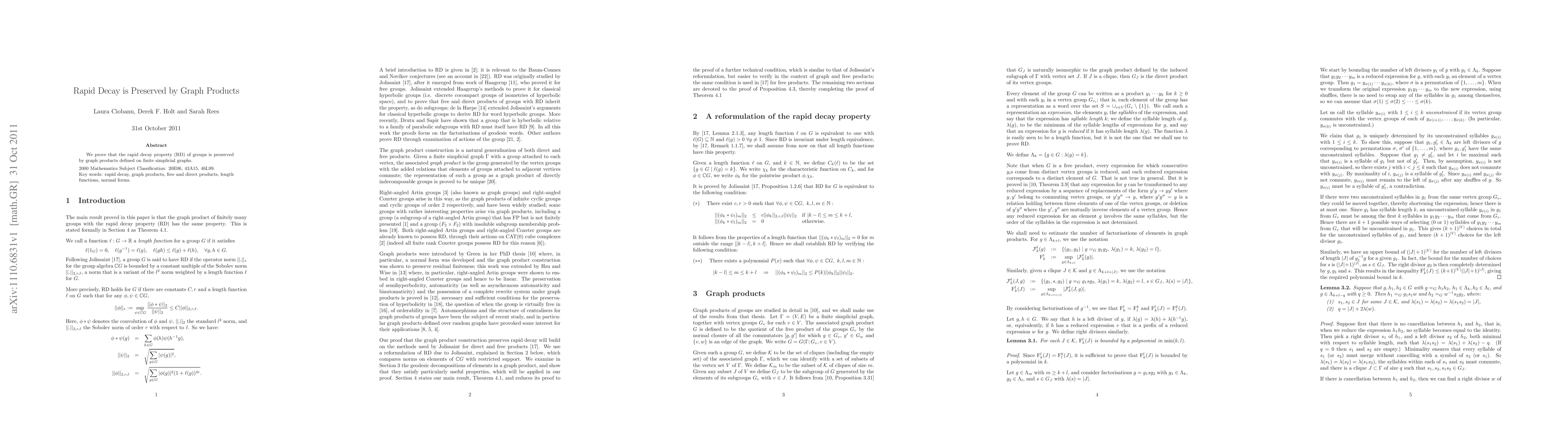 Summary: The research demonstrates that the rapid decay property in groups remains intact under graph products based on finite simplicial graphs. This preserves the RD property across the resulting graph-defined structures.