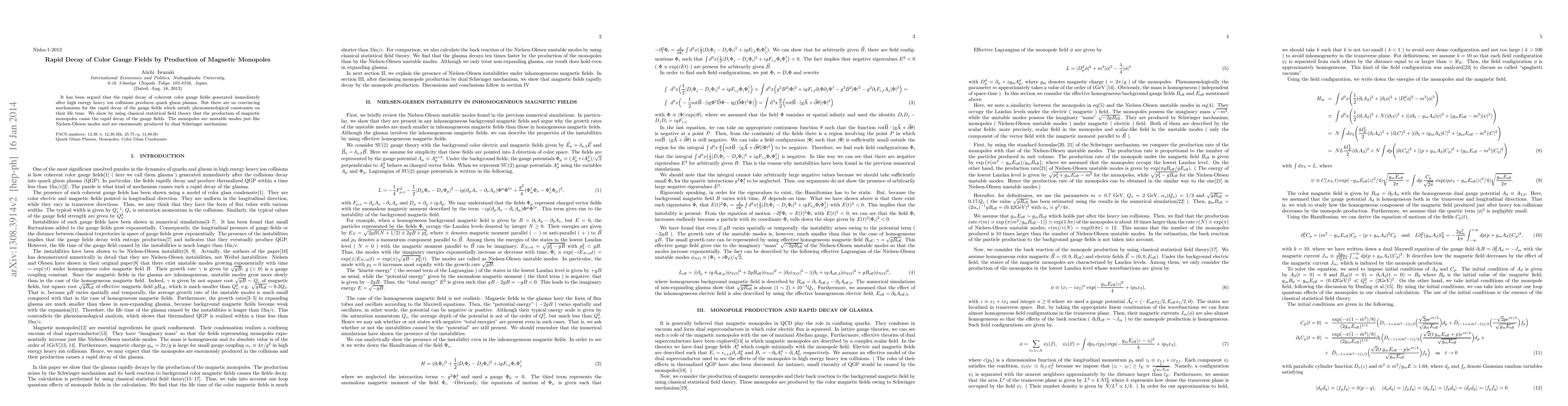 This research demonstrates that the production of magnetic monopoles, via a dual Schwinger mechanism, rapidly decays coherent color gauge fields formed post high-energy heavy ion collisions, explaining the generation of quark gluon plasma without violating phenomenological constraints on their lifetime. The monopoles act as unstable modes akin to Nielsen-Olesen modes, facilitating this rapid decay.