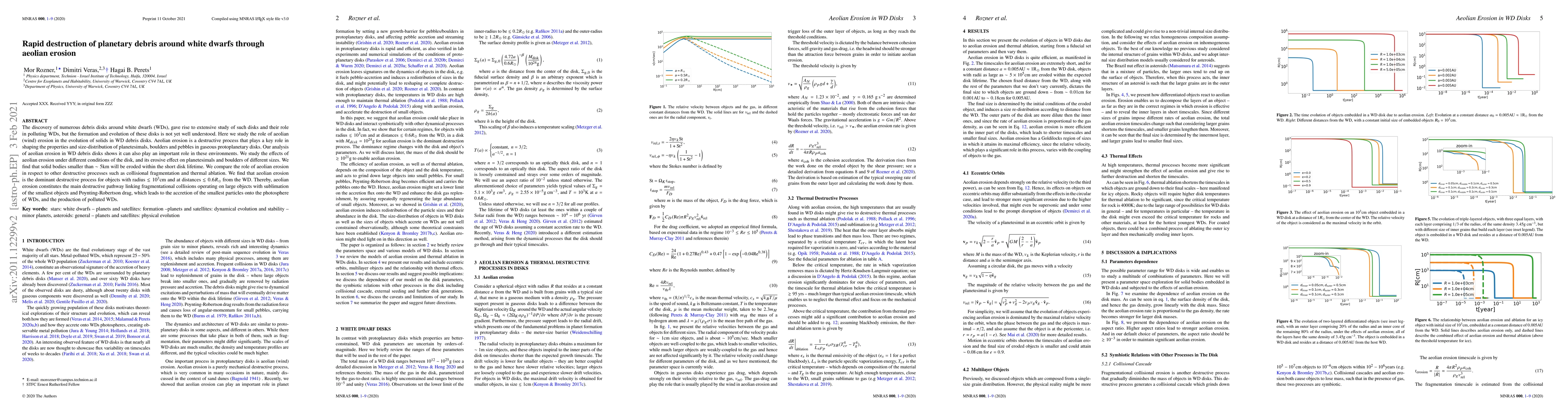This paper investigates the role of aeolian erosion in the destruction of planetary debris around white dwarfs, finding that it is the dominant destructive process for small objects within certain distances from the white dwarf. Aeolian erosion rapidly erodes planetesimals and boulders smaller than 5 km, linking fragmentational collisions and thermal ablation to the accretion of debris onto the white dwarf.