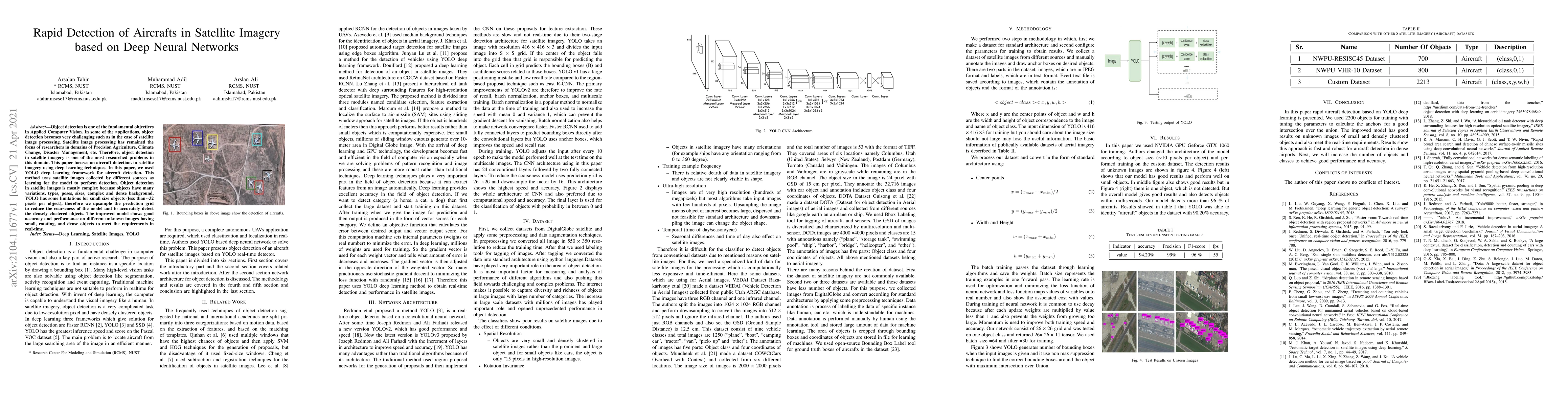 This paper proposes a deep learning-based method using the YOLO framework to detect aircrafts in satellite imagery, addressing challenges due to object variations and complex backgrounds. To enhance detection of small objects, the authors upsample the prediction grid, achieving improved accuracy and real-time performance for diverse scenarios.