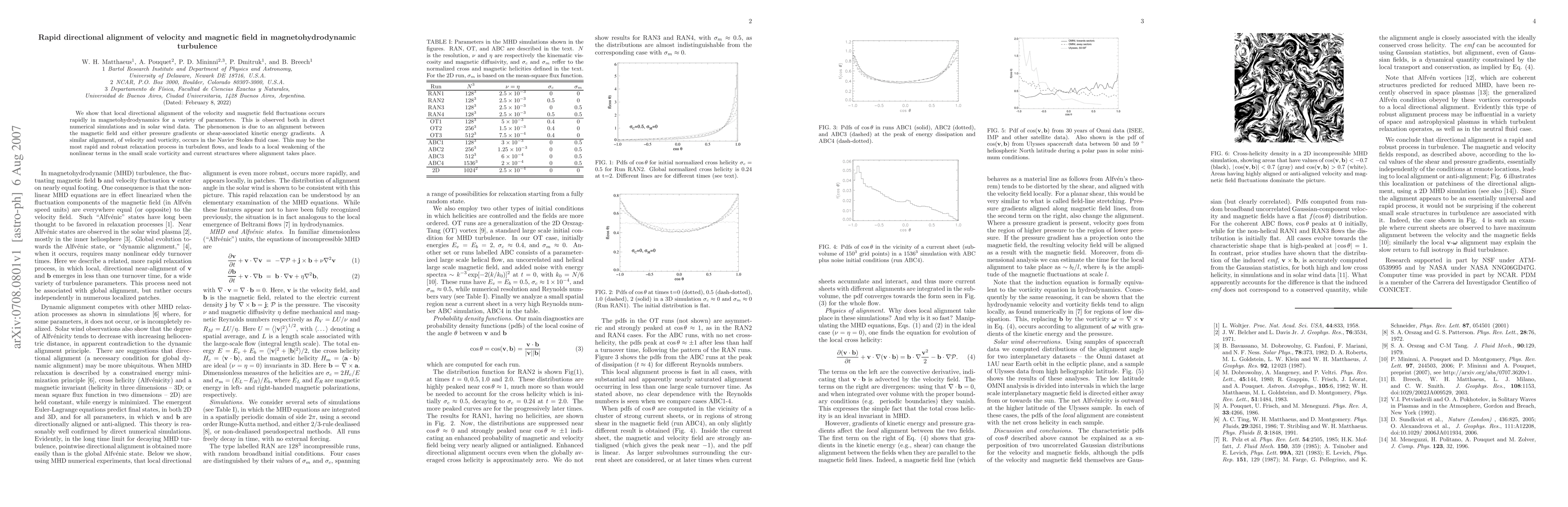 Summary: The paper demonstrates rapid directional alignment between velocity and magnetic field fluctuations in magnetohydrodynamic turbulence, observed in simulations and solar wind data, driven by pressure or kinetic energy gradients. This alignment also occurs in fluid dynamics, suggesting it may be a key relaxation process in turbulent flows.