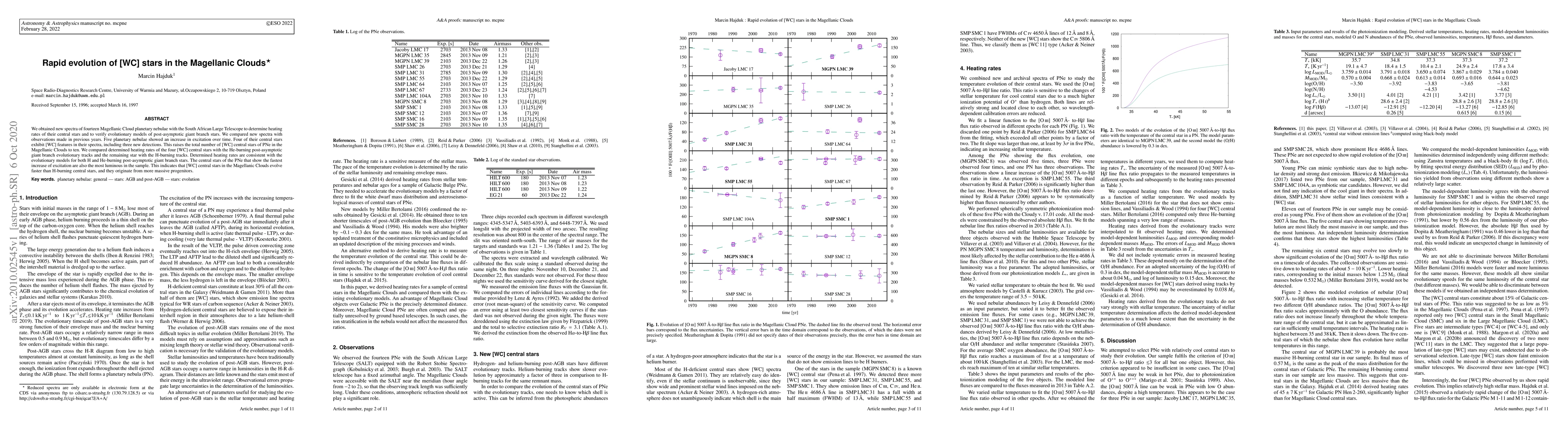 A new study found that [WC] stars in the Magellanic Clouds evolve faster than expected, with five planetary nebulas showing increased excitation over time, indicating a possible link to more massive progenitors.
