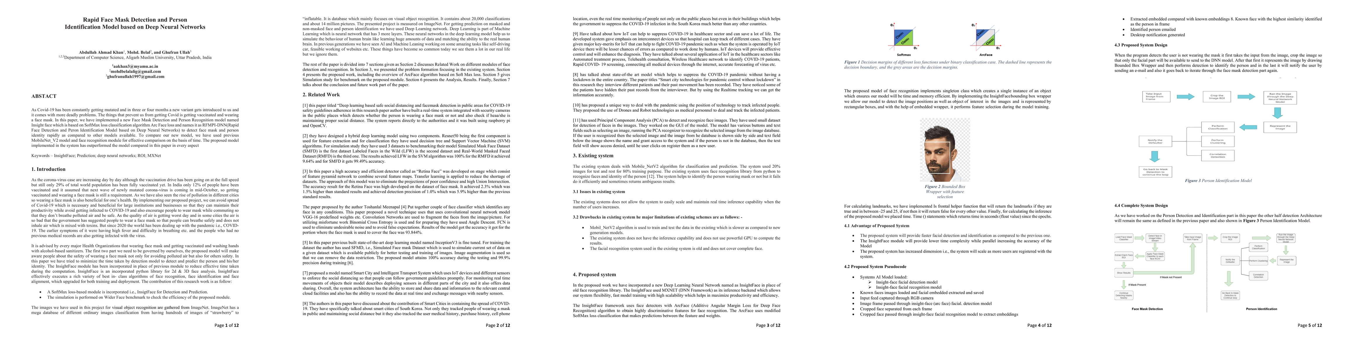 As Covid-19 has been constantly getting mutated and in three or four months a new variant gets introduced to us and it comes with more deadly problems. The things that prevent us from getting Covid is getting vaccinated and wearing a face mask. In this paper, we have implemented a new Face Mask Detection and Person Recognition model named Insight face which is based on SoftMax loss classification algorithm Arc Face loss and names it as RFMPI-DNN(Rapid Face Detection and Peron Identification Model based on Deep Neural Networks) to detect face mask and person identity rapidly as compared to other models available. To compare our new model, we have used previous MobileNet_V2 model and face recognition module for effective comparison on the basis of time. The proposed model implemented in the system has outperformed the model compared in this paper in every aspect