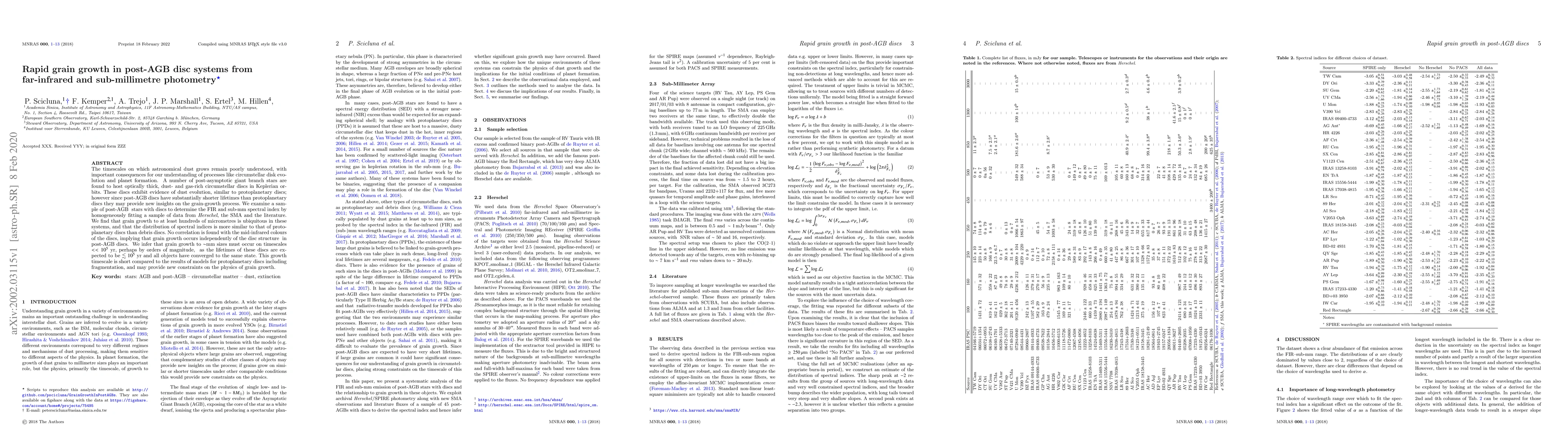 This paper investigates rapid grain growth in post-AGB disc systems using far-infrared and sub-millimetre photometry, finding that grain sizes reach hundreds of micrometres quickly. The study suggests that grain growth to millimeter sizes occurs on timescales much shorter than 10^5 years, providing new insights into the physics of grain growth.