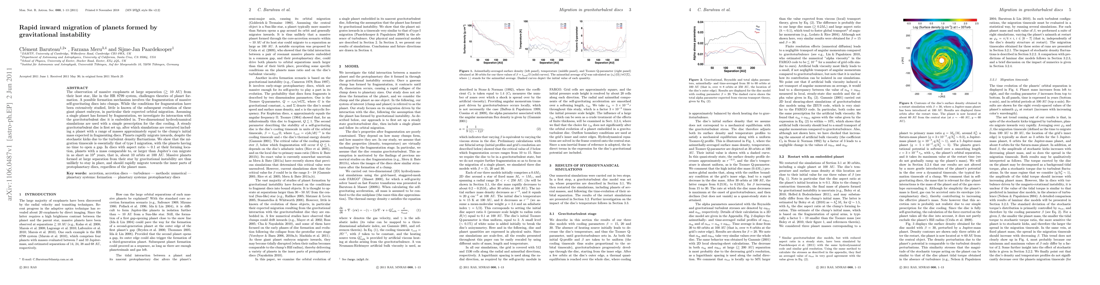 This paper investigates the rapid inward migration of giant planets formed by gravitational instability in massive self-gravitating discs. Using hydrodynamical simulations, it finds that planets formed by fragmentation migrate inwards quickly, on timescales similar to type I migration, and are unlikely to remain at their initial large separations.