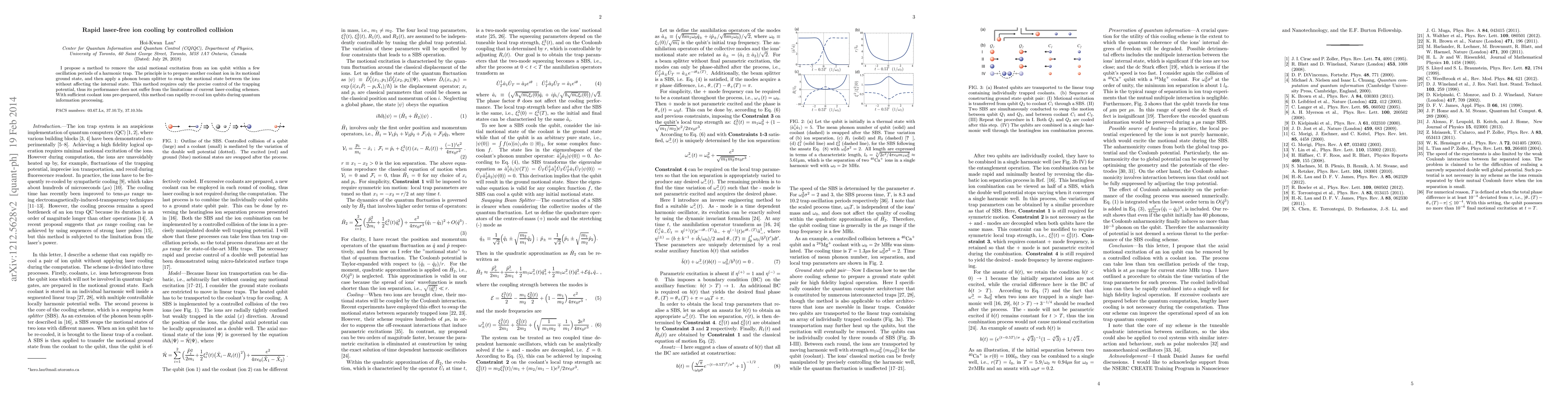 I propose a method to remove the axial motional excitation from an ion qubit within a few oscillation periods of a harmonic trap. The principle is to prepare another coolant ion in its motional ground state, and then apply a phonon beam splitter to swap the motional state between the ions without affecting the internal state. This method requires only the precise control of the trapping potential, thus its performance does not suffer from the limitations of current laser-cooling schemes. With sufficient coolant ions pre-prepared, this method can rapidly re-cool ion qubits during quantum information processing.