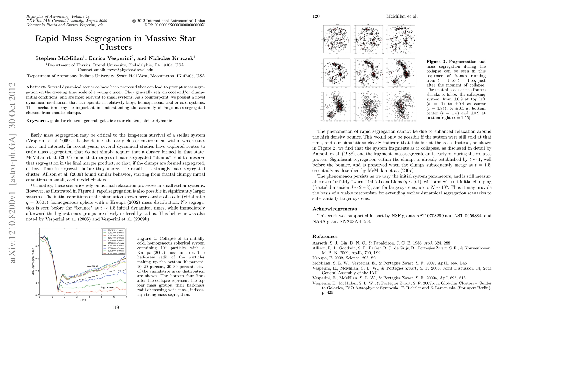 This paper proposes a new dynamical mechanism for rapid mass segregation in massive star clusters, applicable to large, homogeneous systems, contrasting with existing models that focus on small, clumpy systems. This mechanism could help explain the formation of large, mass-segregated clusters from smaller clumps.