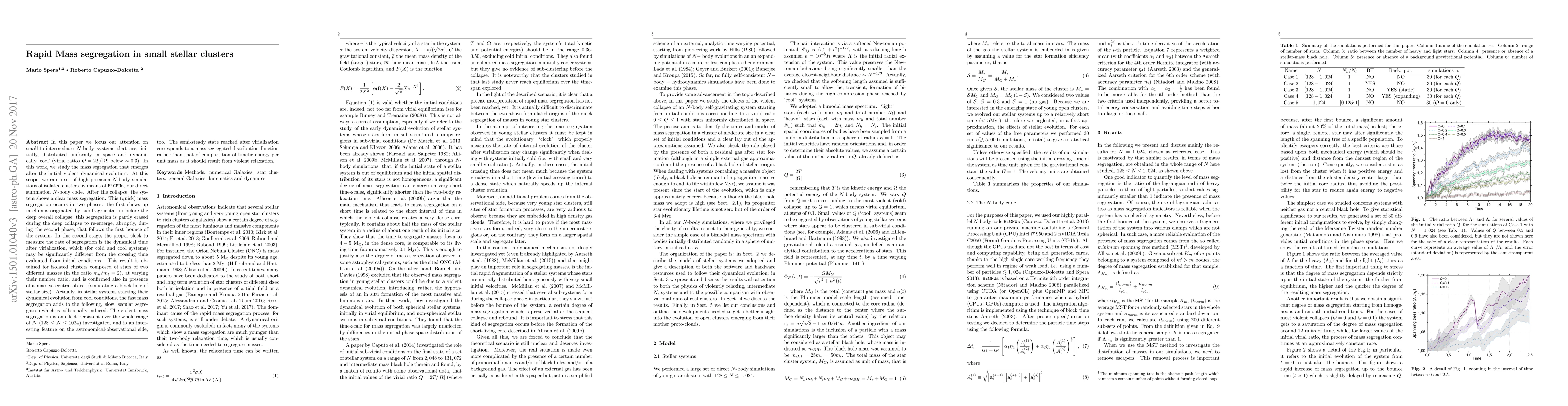 This paper investigates rapid mass segregation in small stellar clusters through high-precision N-body simulations. It reveals that mass segregation occurs in two distinct phases, with the second phase following the system's initial collapse and characterized by a different timescale than the initial conditions.