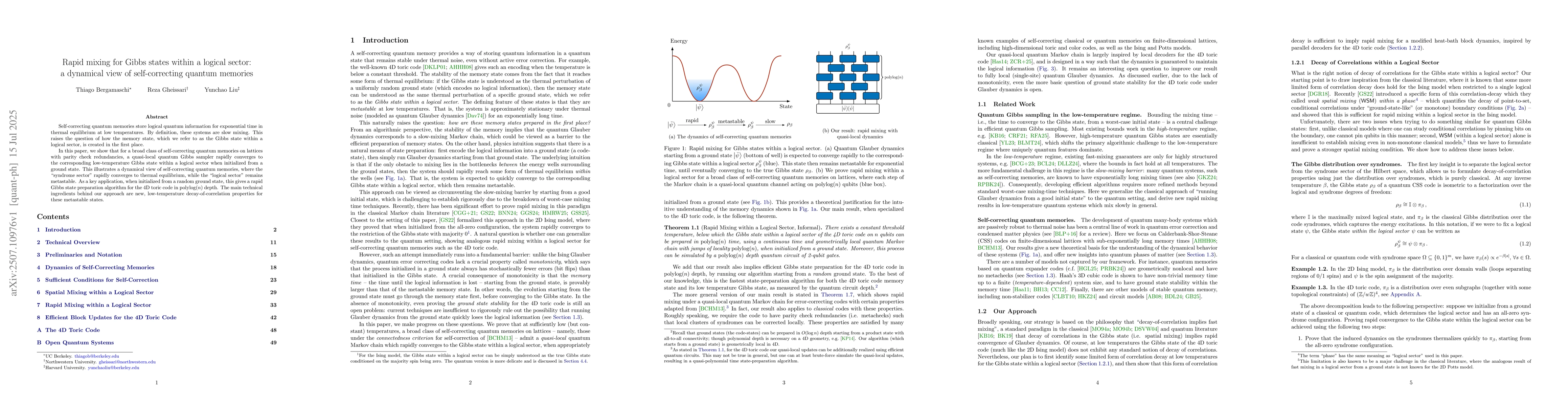 Self-correcting quantum memories store logical quantum information for exponential time in thermal equilibrium at low temperatures. By definition, these systems are slow mixing. This raises the question of how the memory state, which we refer to as the Gibbs state within a logical sector, is created in the first place. In this paper, we show that for a broad class of self-correcting quantum memories on lattices with parity check redundancies, a quasi-local quantum Gibbs sampler rapidly converges to the corresponding low-temperature Gibbs state within a logical sector when initialized from a ground state. This illustrates a dynamical view of self-correcting quantum memories, where the "syndrome sector" rapidly converges to thermal equilibrium, while the "logical sector" remains metastable. As a key application, when initialized from a random ground state, this gives a rapid Gibbs state preparation algorithm for the 4D toric code in $\mathrm{polylog}(n)$ depth. The main technical ingredients behind our approach are new, low-temperature decay-of-correlation properties for these metastable states.