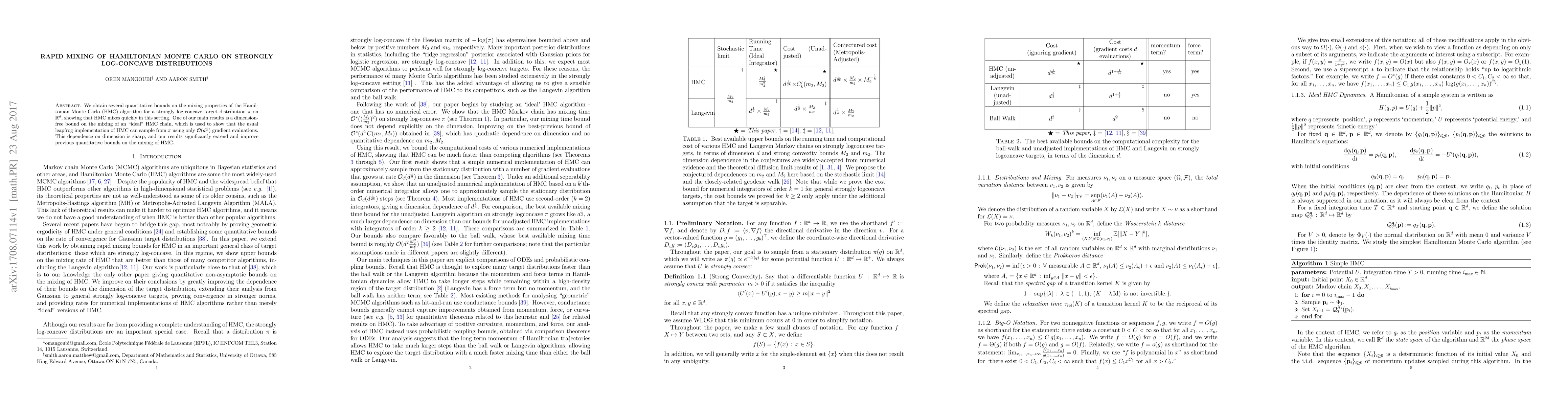 Researchers prove Hamiltonian Monte Carlo mixes quickly for strongly log-concave distributions, achieving a dimension-free bound on mixing speed with an optimal number of gradient evaluations.