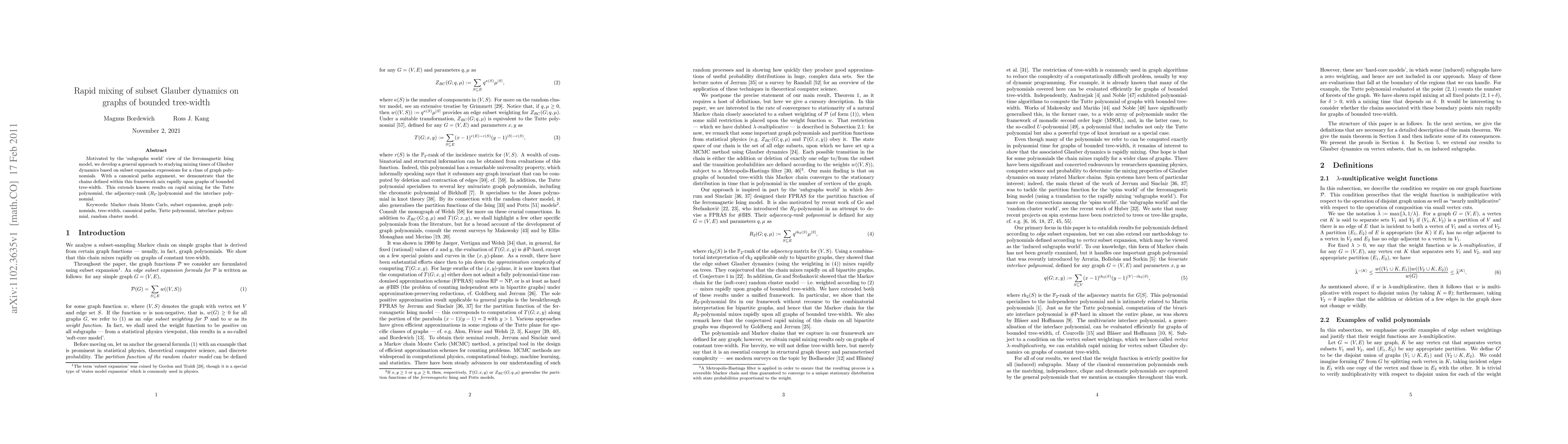 This paper develops a framework for analyzing mixing times of Glauber dynamics on graphs with bounded tree-width, showing rapid mixing through subset expansion expressions for graph polynomials. The approach extends previously known results for the Tutte, adjacency-rank, and interlace polynomials.