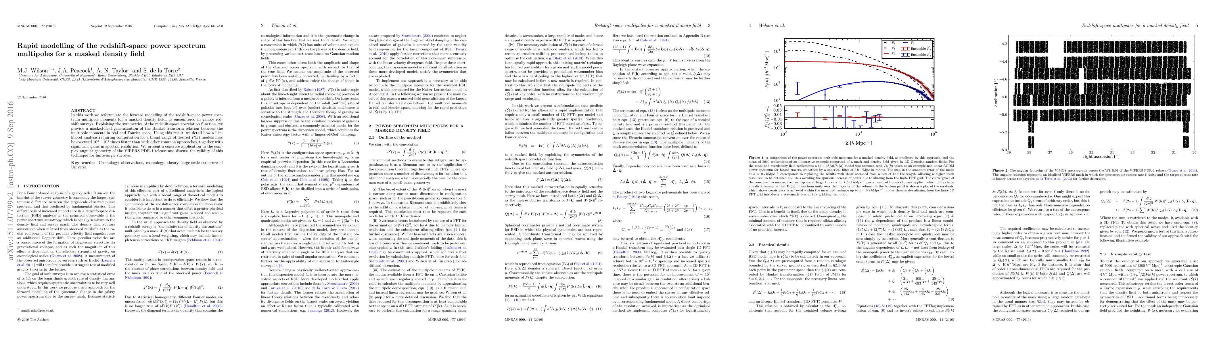In this work we reformulate the forward modelling of the redshift-space power spectrum multipole moments for a masked density field, as encountered in galaxy redshift surveys. Exploiting the symmetries of the redshift-space correlation function, we provide a masked-field generalisation of the Hankel transform relation between the multipole moments in real and Fourier space. Using this result, we detail how a likelihood analysis requiring computation for a broad range of desired $P(k)$ models may be executed $10^3-10^4$ times faster than with other common approaches, together with significant gains in spectral resolution. We present a concrete application to the complex angular geometry of the VIPERS PDR-1 release and discuss the validity of this technique for finite-angle surveys.