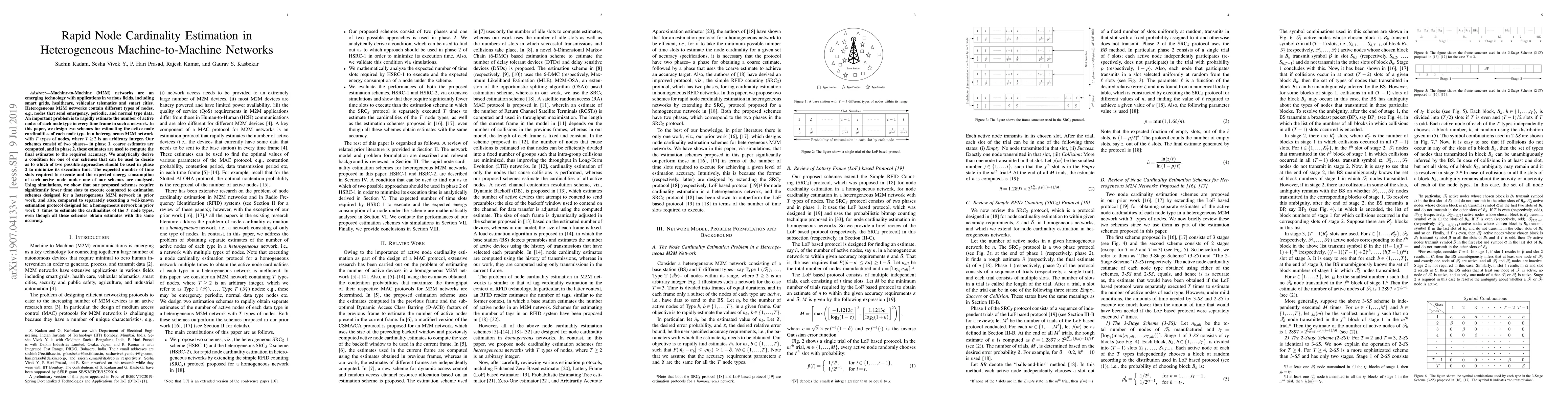 This paper proposes two schemes for rapidly estimating the number of active nodes in heterogeneous Machine-to-Machine (M2M) networks, consisting of two phases for improved accuracy. The schemes significantly reduce execution time and energy consumption compared to prior methods.