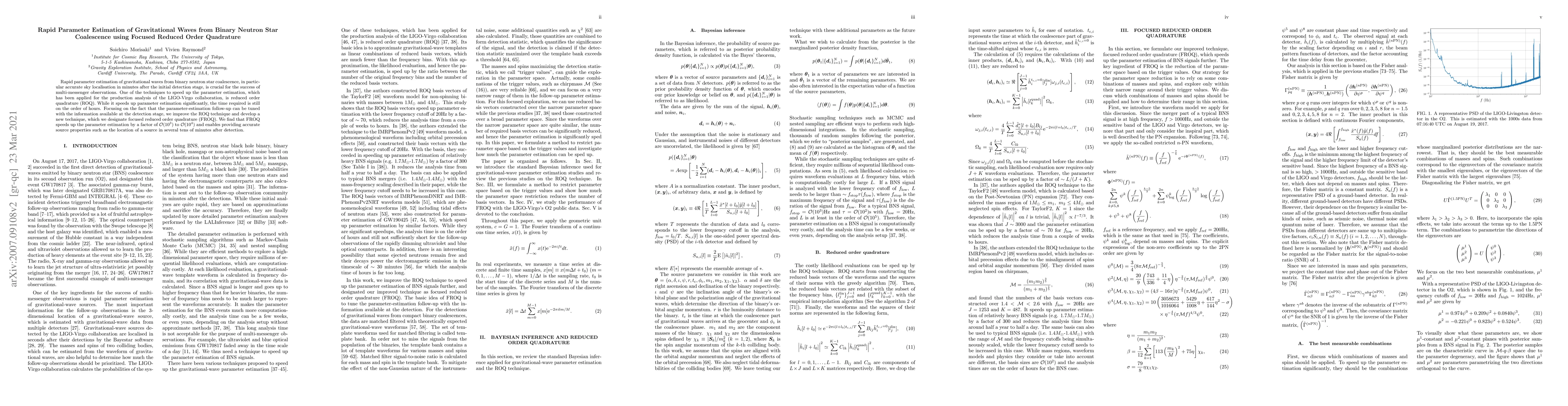 This paper introduces focused reduced order quadrature (FROQ) to rapidly estimate parameters of gravitational waves from binary neutron star coalescence, significantly speeding up the process by a factor of $\mathcal{O}(10^3)$ to $\mathcal{O}(10^4)$, enabling accurate sky localization in minutes post-detection.