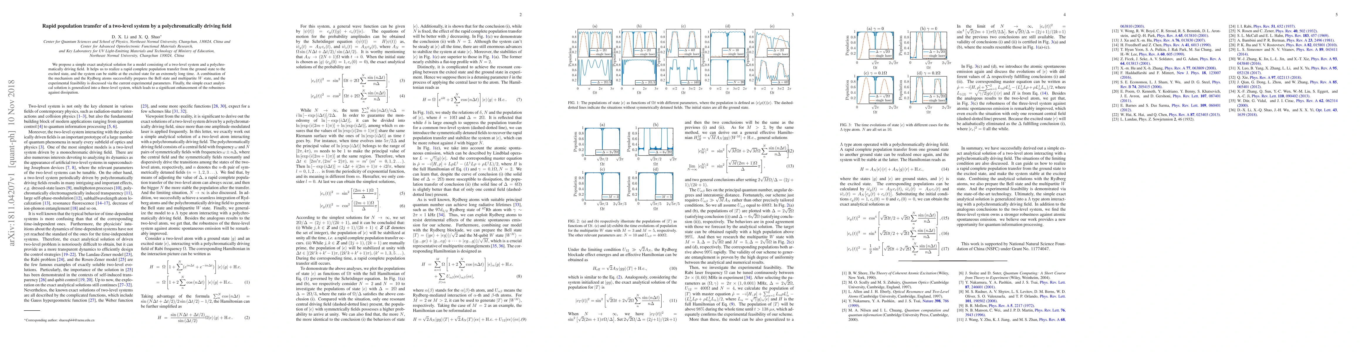 We propose a simple exact analytical solution for a model consisting of a two-level system and a polychromatically driving field. It helps us to realize a rapid complete population transfer from the ground state to the excited state, and the system can be stable at the excited state for an extremely long time. A combination of the mechanism and the Rydberg atoms successfully prepares the Bell state and multipartite $W$ state, and the experimental feasibility is discussed via the current experimental parameters. Finally, the simple exact analytical solution is generalized into a three-level system, which leads to a significant enhancement of the robustness against dissipation.