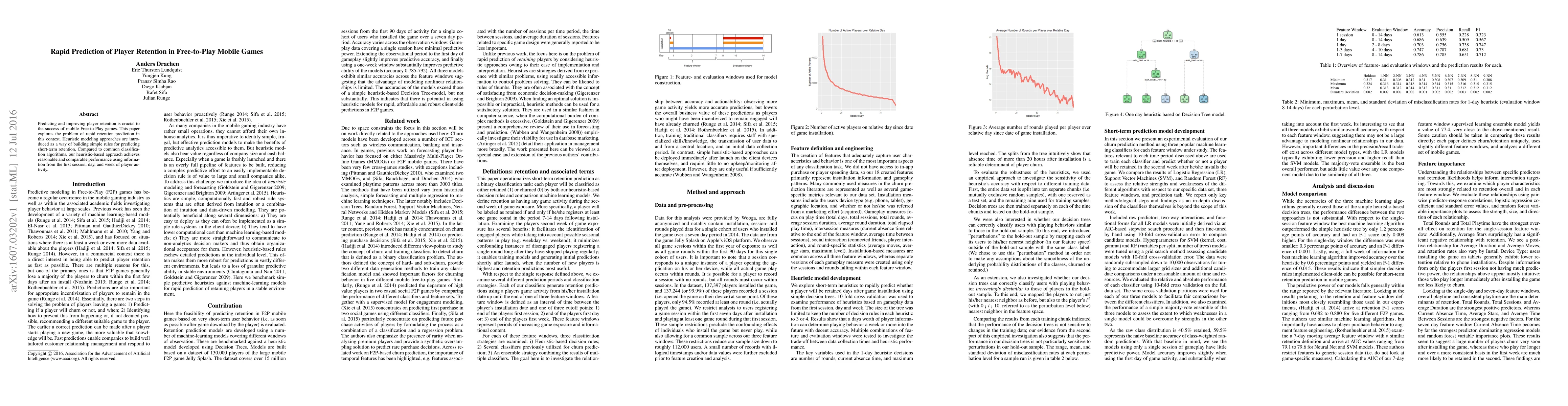 This paper introduces heuristic modeling to rapidly predict player retention in Free-to-Play mobile games, achieving comparable performance to classification algorithms using data from the first session, day, and week of player activity. The proposed method aims to enhance game success by improving retention prediction.