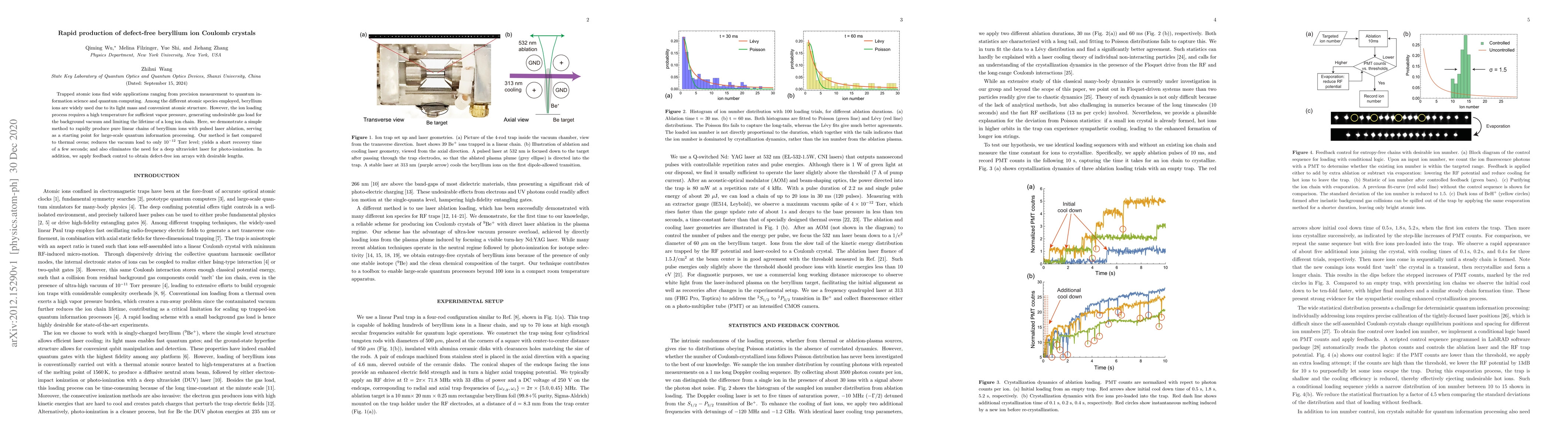 Trapped atomic ions find wide applications ranging from precision measurement to quantum information science and quantum computing. Among the different atomic species employed, beryllium ions are widely used due to its light mass and convenient atomic structure. However, the ion loading process requires a high temperature for sufficient vapor pressure, generating undesirable gas load for the background vacuum and limiting the lifetime of a long ion chain. Here, we demonstrate a simple method to rapidly produce pure linear chains of beryllium ions with pulsed laser ablation, serving as a starting point for large-scale quantum information processing. Our method is fast compared to thermal ovens; reduces the vacuum load to only 10^(-12) Torr level; yields a short recovery time of a few seconds; and also eliminates the need for a deep ultraviolet laser for photo-ionization. In addition, we apply feedback control to obtain defect-free ion arrays with desirable lengths.