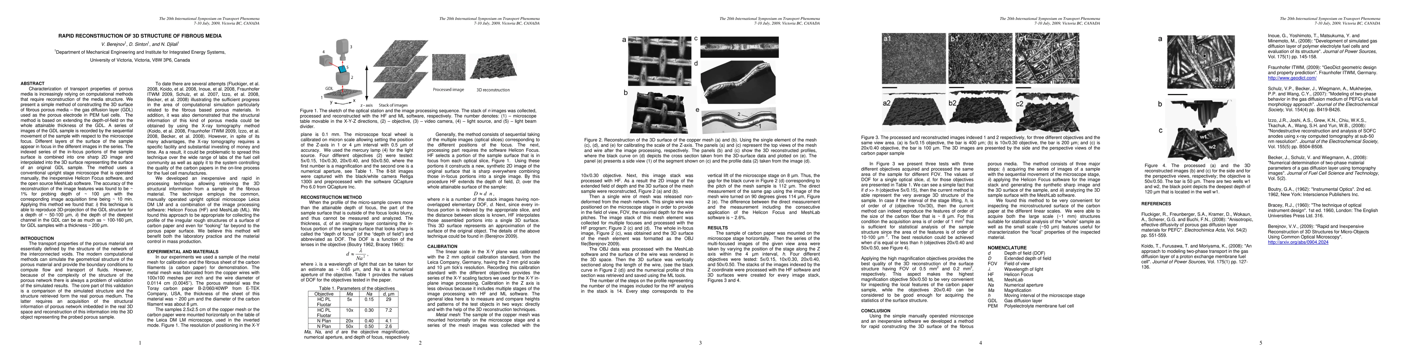 Researchers developed a simple method to reconstruct the 3D structure of fibrous media, like gas diffusion layers in PEM fuel cells, using images taken with a microscope. The technique can accurately reproduce the layer-by-layer surface features with high accuracy.
