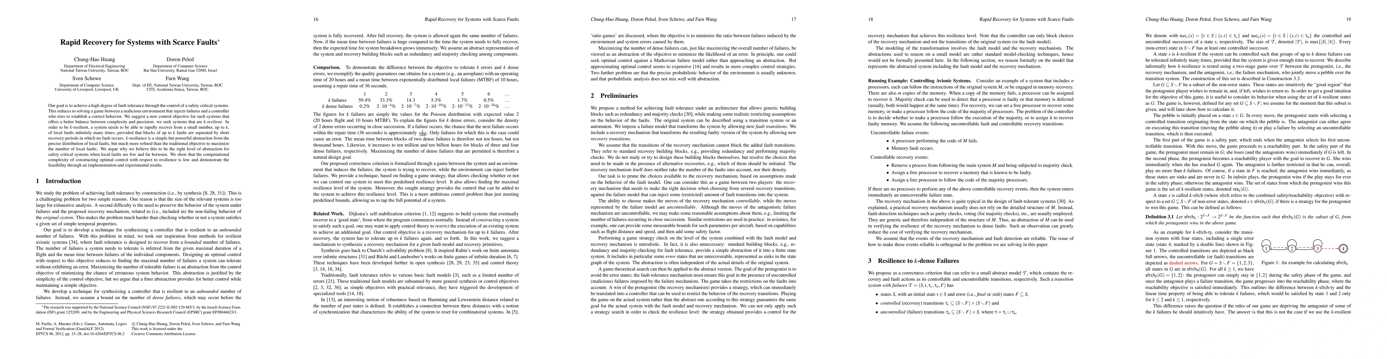 Researchers propose a new approach to control safety-critical systems with scarce faults, focusing on k-resilience, which enables rapid recovery from small numbers of local faults. The study demonstrates the feasibility of this approach through implementation and experimental results.