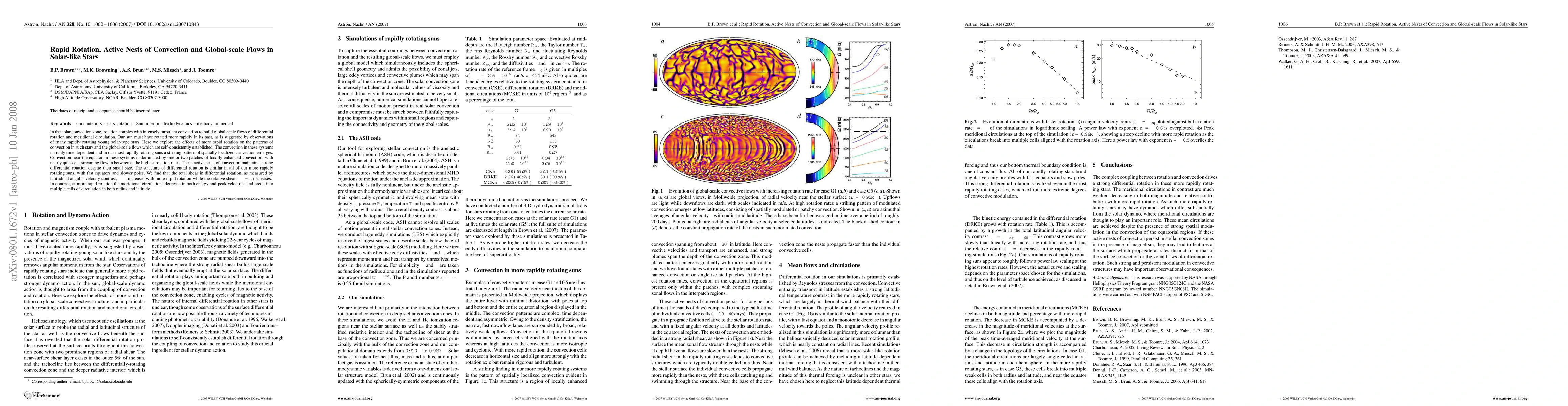 This study investigates how rapid rotation influences convection patterns and global-scale flows in young solar-type stars, revealing that high rotation rates lead to localized "active nests" of convection and a consistent differential rotation pattern, while meridional circulation diminishes and fragments.