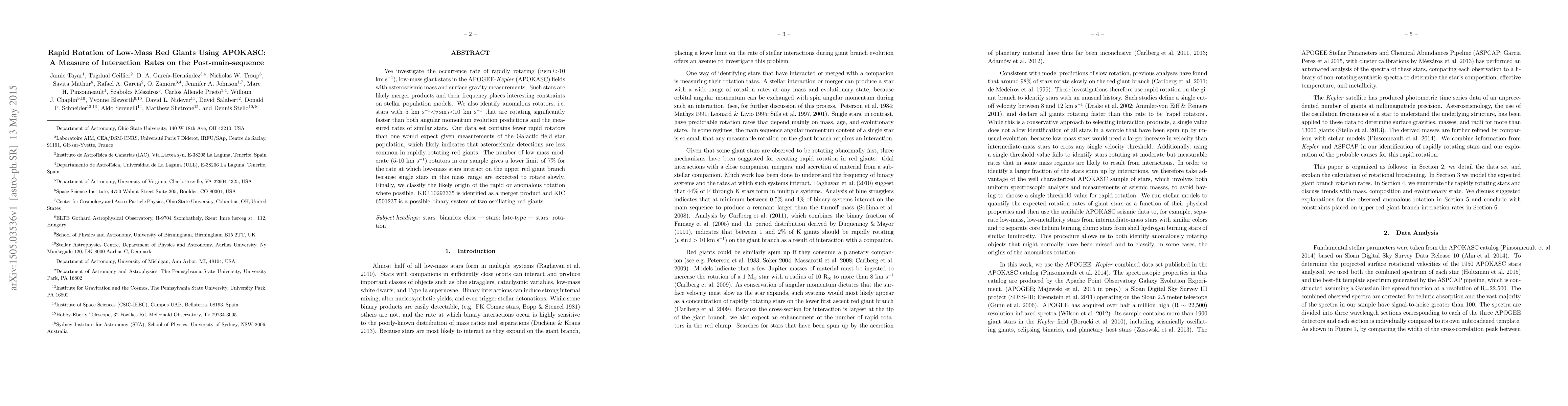 A study using APOKASC data found that low-mass red giant stars are less common than expected among rapidly rotating stars, with only 7% likely interaction rates on the upper red giant branch.