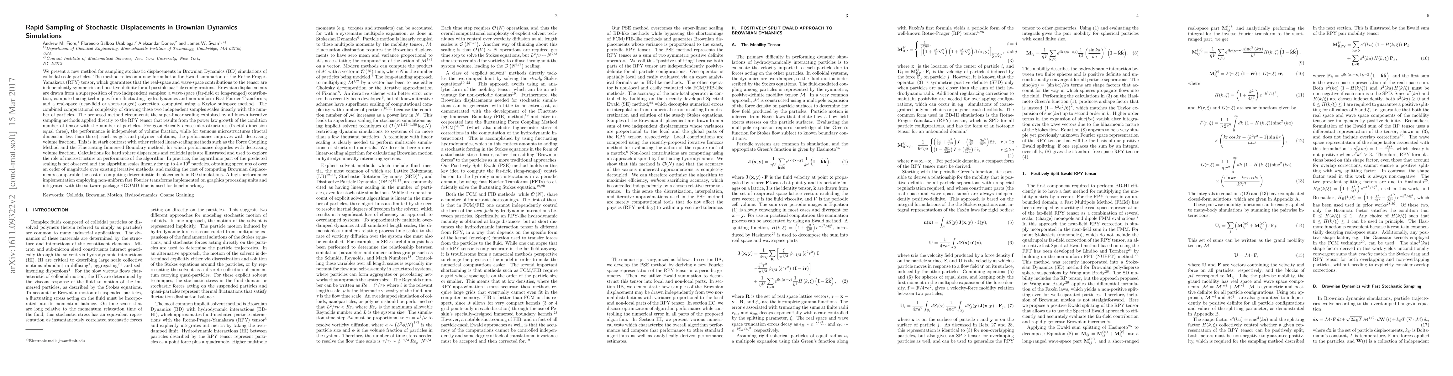A new method for Brownian Dynamics simulations of colloidal scale particles efficiently samples stochastic displacements, achieving linear scaling with the number of particles, and offering a significant speedup over existing iterative methods.