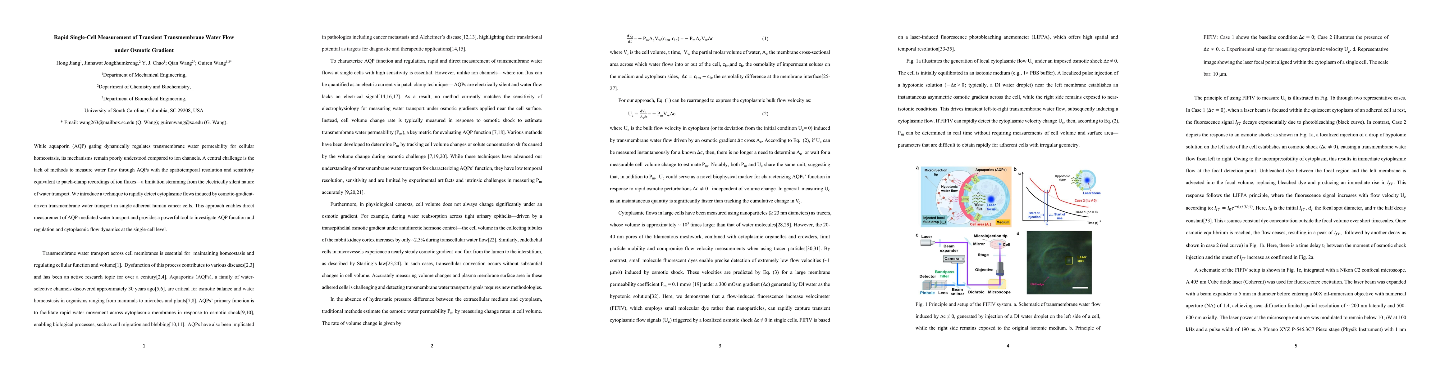 The research employed a technique called FIFIV to rapidly detect cytoplasmic flows induced by osmotic-gradient-driven transmembrane water transport in single adherent human cancer cells.