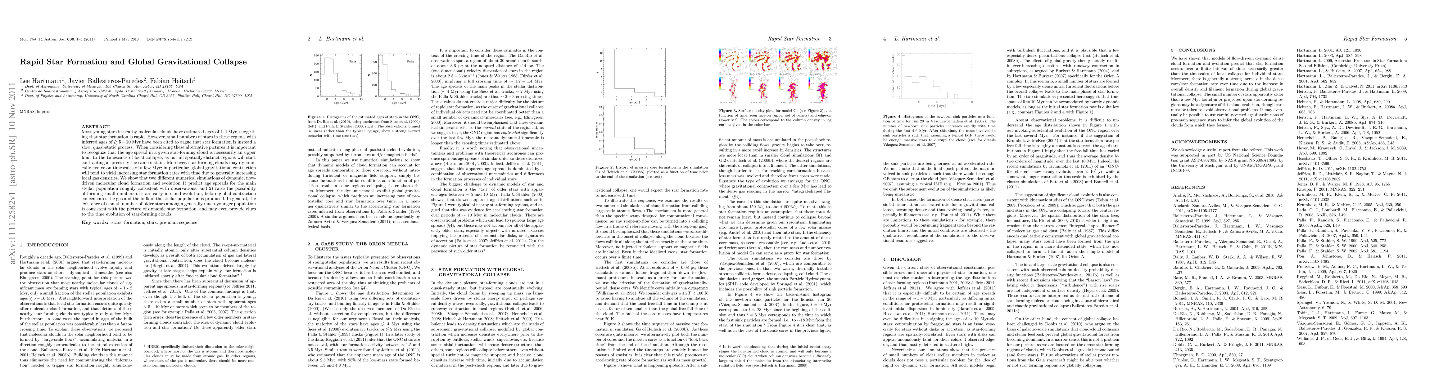 This paper argues that rapid star formation in molecular clouds is consistent with global gravitational collapse, showing that simulations predict age spreads in star populations and suggest early formation of a few older stars before bulk star formation occurs as gas density increases.
