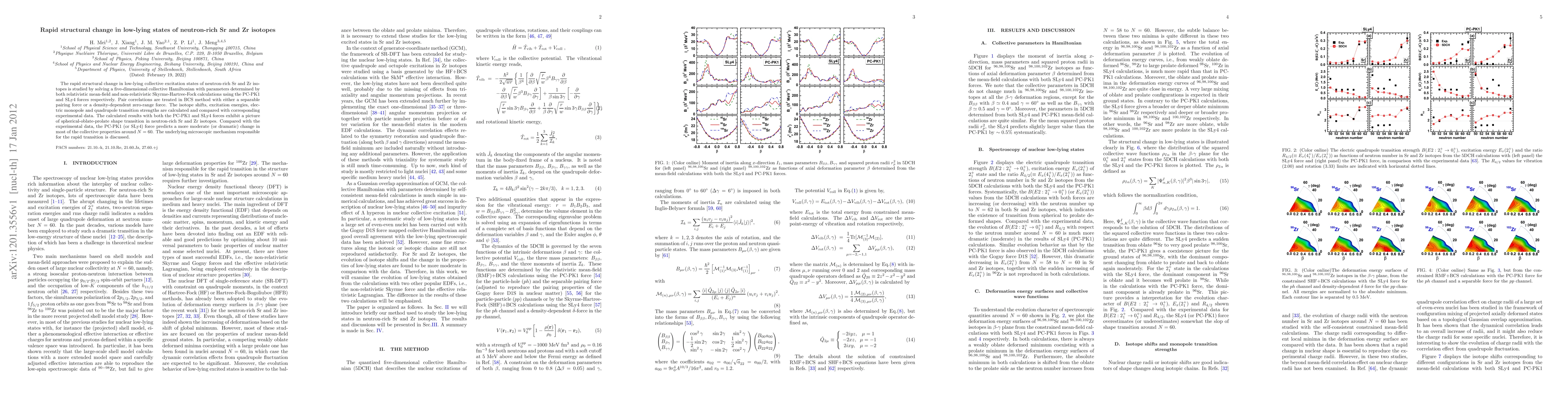 This paper investigates the rapid structural changes in low-lying states of neutron-rich Sr and Zr isotopes using a five-dimensional collective Hamiltonian, revealing a spherical-oblate-prolate transition. The study compares theoretical predictions from relativistic and non-relativistic models with experimental data, highlighting discrepancies in the predicted transition intensity.