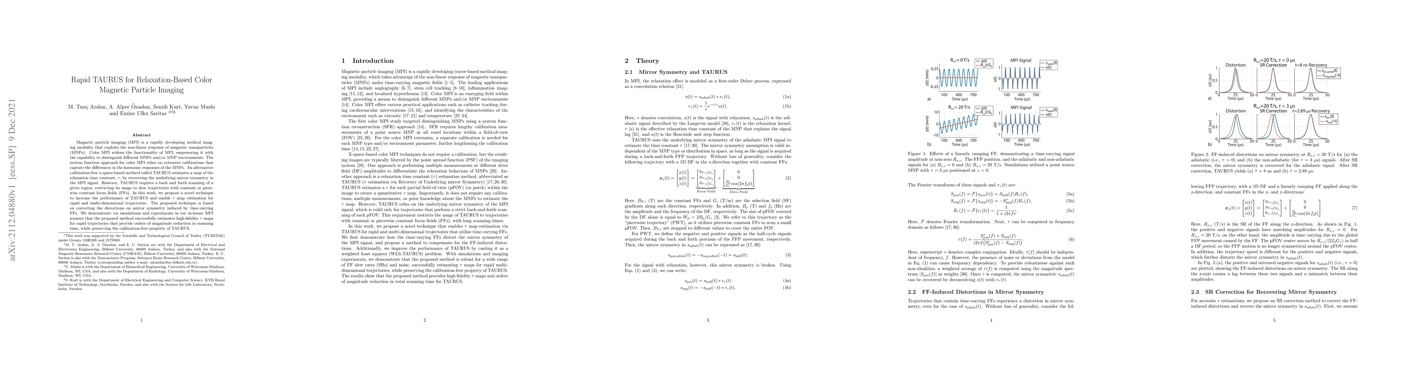 Magnetic particle imaging (MPI) is a rapidly developing medical imaging modality that exploits the non-linear response of magnetic nanoparticles (MNPs). Color MPI widens the functionality of MPI, empowering it with the capability to distinguish different MNPs and/or MNP environments. The system function approach for color MPI relies on extensive calibrations that capture the differences in the harmonic responses of the MNPs. An alternative calibration-free x-space-based method called TAURUS estimates a map of the relaxation time constant, by recovering the underlying mirror symmetry in the MPI signal. However, TAURUS requires a back and forth scanning of a given region, restricting its usage to slow trajectories with constant or piecewise constant focus fields (FFs). In this work, we propose a novel technique to increase the performance of TAURUS and enable $\tau$ map estimation for rapid and multi-dimensional trajectories. The proposed technique is based on correcting the mirror symmetry distortion induced by time-varying FFs. We demonstrate via simulations and experiments in our in-house MPI scanner that the proposed method successfully estimates high-fidelity time constant maps for rapid trajectories that provide orders of magnitude reduction in scanning time while preserving the calibration-free property of TAURUS.