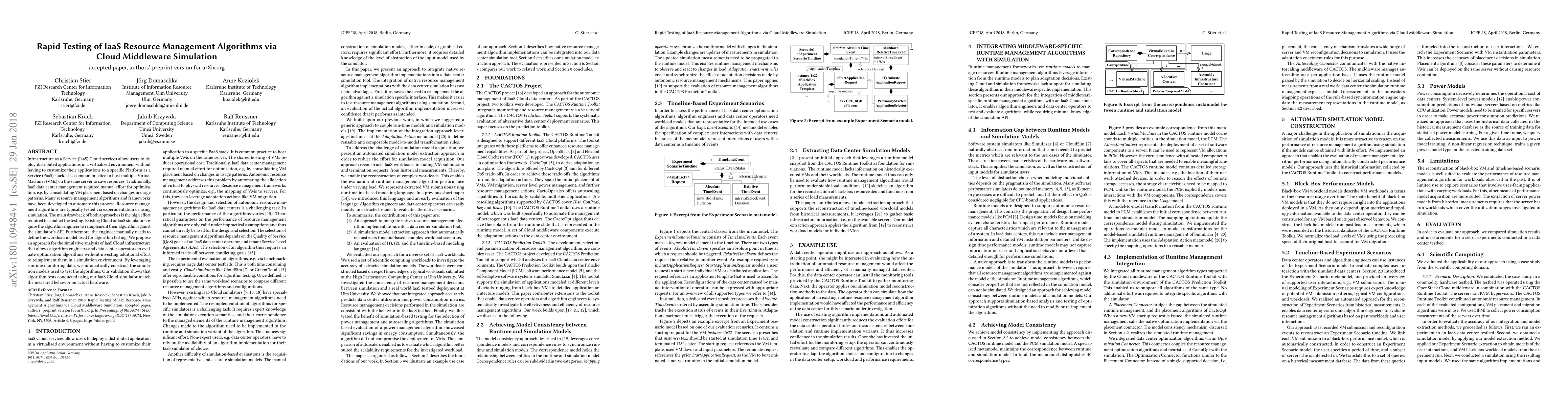 This paper proposes a method to rapidly test IaaS resource management algorithms using cloud middleware simulation, eliminating the need for algorithm reimplementation and manual workload model definition. The approach leverages runtime monitoring data to automatically construct simulation models, demonstrating accurate algorithm behavior matching on actual hardware.