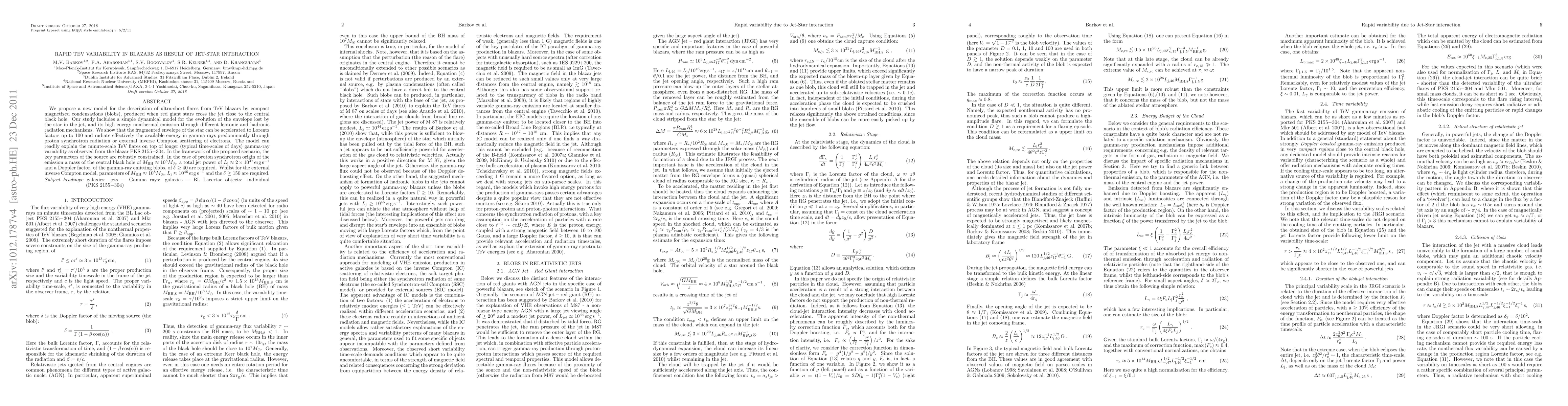 Blazar ultra-short TeV flares may be caused by interactions between a red giant star and a jet from a black hole, producing high-energy radiation through proton synchrotron or external inverse Compton scattering.