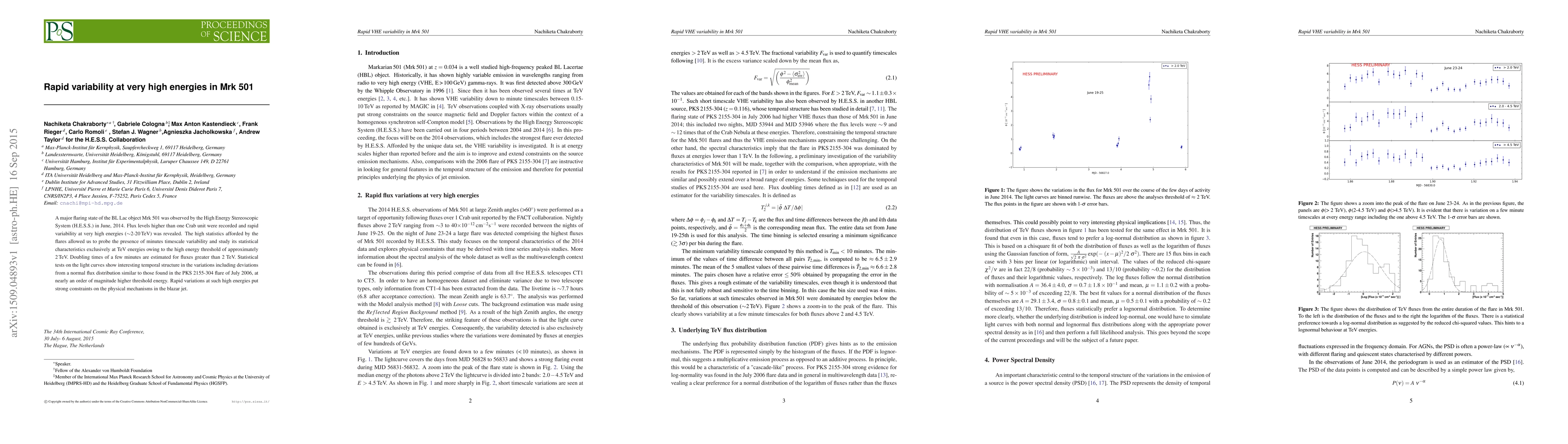 The H.E.S.S. observatory detected a major flaring state in the BL Lac object Mrk 501 in June 2014, revealing rapid variability at very high energies (2-20 TeV) with doubling times of a few minutes. These observations provide strong constraints on the physical mechanisms in the blazar jet.