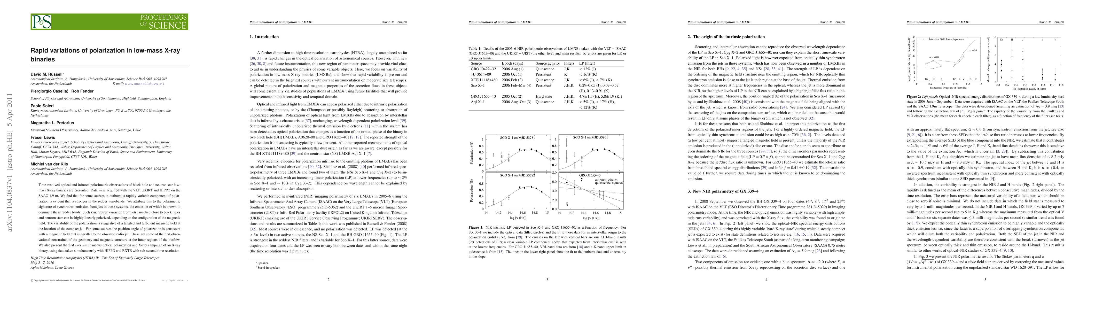 Time-resolved optical and infrared polarimetric observations of black hole and neutron star low-mass X-ray binaries are presented. Data were acquired with the VLT, UKIRT and HIPPO on the SAAO 1.9-m. We find that for some sources in outburst, a rapidly variable component of polarization is evident that is stronger in the redder wavebands. We attribute this to the polarimetric signature of synchrotron emission from jets in these systems, the emission of which is known to dominate these redder bands. Such synchrotron emission from jets launched close to black holes and neutron stars can be highly linearly polarized, depending on the configuration of the magnetic field. The variability of the polarization is suggestive of a tangled and turbulent magnetic field at the location of the compact jet. For some sources the position angle of polarization is consistent with a magnetic field that is parallel to the observed radio jet. These are some of the first observational constraints of the geometry and magnetic structure at the inner regions of the outflow. We also present the first ever simultaneous optical polarization and X-ray campaign of an X-ray binary, using data taken simultaneously with HIPPO and RXTE with sub-second time resolution.