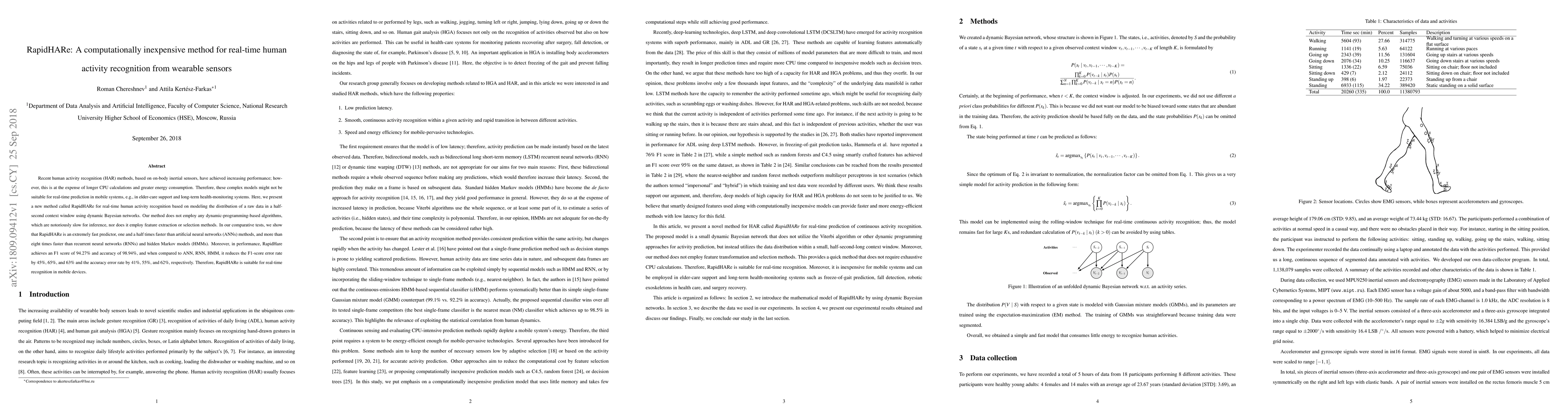 RapidHARe is a fast, computationally inexpensive method for real-time human activity recognition using wearable sensors, achieving high accuracy and significantly faster processing times compared to ANNs, RNNs, and HMMs, making it ideal for mobile systems. It achieves an F1 score of 94.27% and accuracy of 98.94%, reducing error rates by up to 65% compared to other methods.