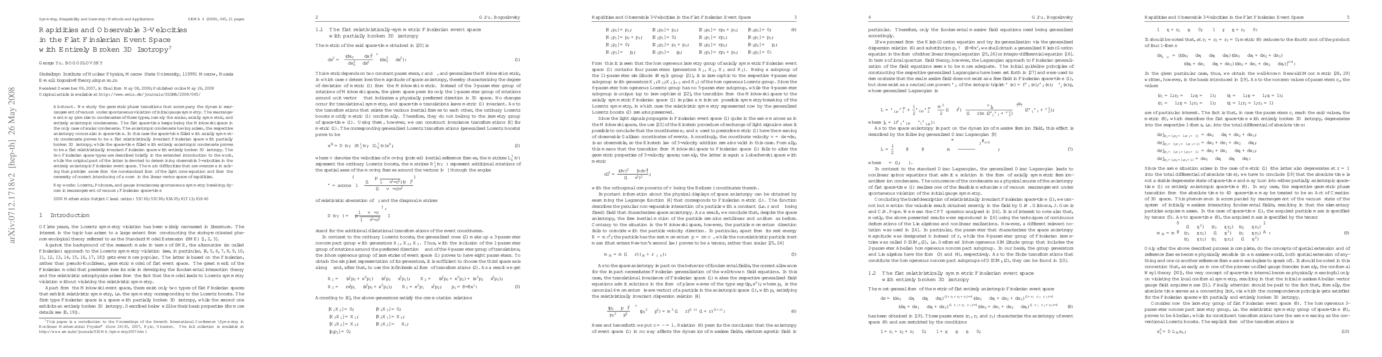 We study the geometric phase transitions that accompany the dynamic rearrangement of vacuum under spontaneous violation of initial gauge symmetry. The rearrangement may give rise to condensates of three types, namely the scalar, axially symmetric, and entirely anisotropic condensates. The flat space-time keeps being the Minkowski space in the only case of scalar condensate. The anisotropic condensate having arisen, the respective anisotropy occurs also in space-time. In this case the space-time filled with axially symmetric condensate proves to be a flat relativistically invariant Finslerian space with partially broken 3D isotropy, while the space-time filled with entirely anisotropic condensate proves to be a flat relativistically invariant Finslerian space with entirely broken 3D isotropy. The two Finslerian space types are described briefly in the extended introduction to the work, while the original part of the latter is devoted to determining observable 3-velocities in the entirely anisotropic Finslerian event space. The main difficulties that are overcome in solving that problem arose from the nonstandard form of the light cone equation and from the necessity of correct introducing of a norm in the linear vector space of rapidities.