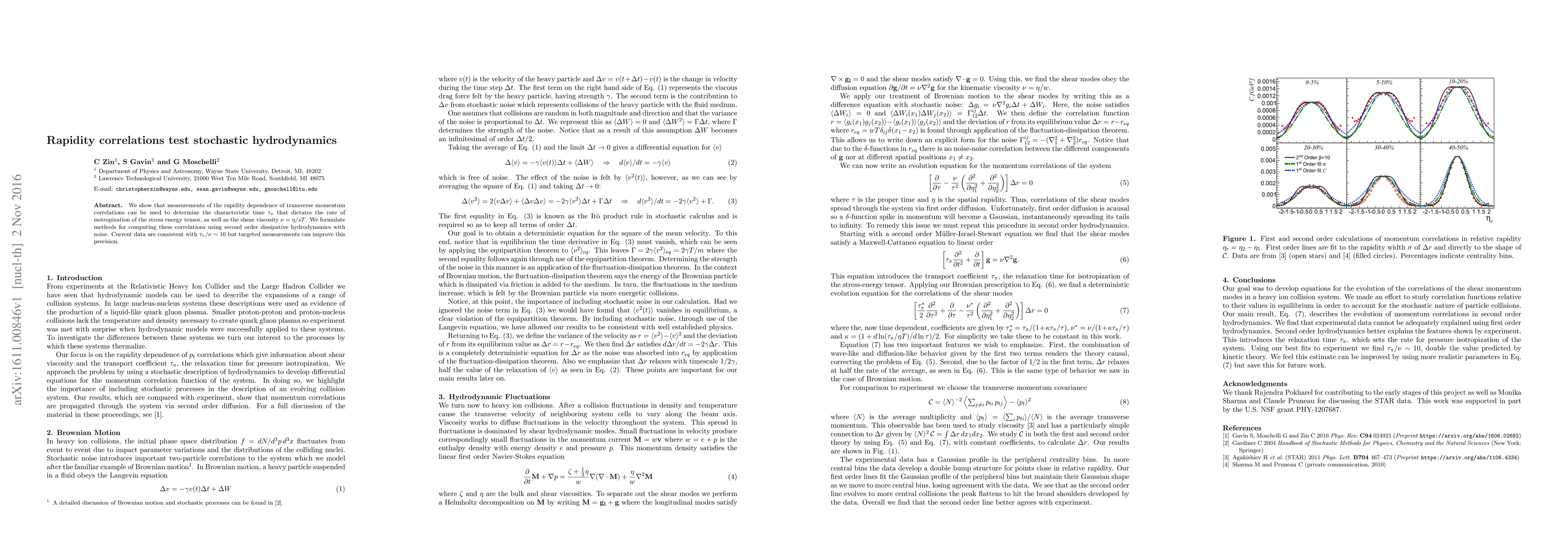 We show that measurements of the rapidity dependence of transverse momentum correlations can be used to determine the characteristic time $\tau_{\pi}$ that dictates the rate of isotropization of the stress energy tensor, as well as the shear viscosity $\nu = \eta/sT$. We formulate methods for computing these correlations using second order dissipative hydrodynamics with noise. Current data are consistent with $\tau_{\pi}/\nu \sim 10$ but targeted measurements can improve this precision.