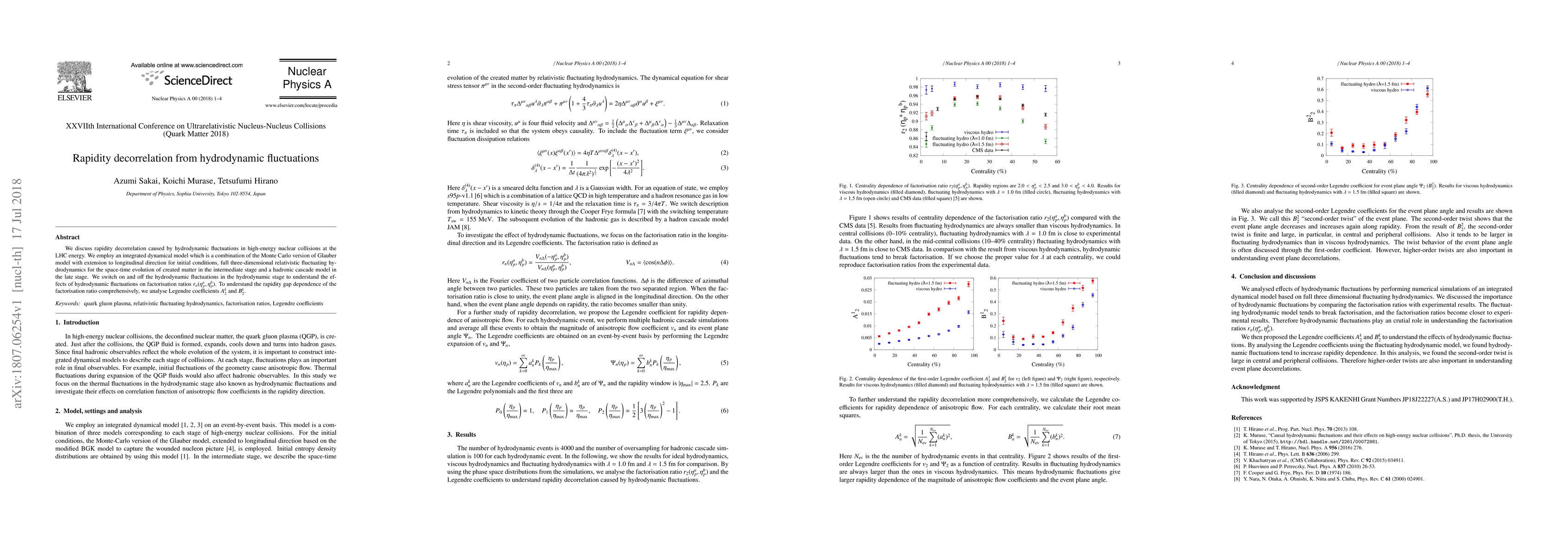 We discuss rapidity decorrelation caused by hydrodynamic fluctuations in high-energy nuclear collisions at the LHC energy. We employ an integrated dynamical model which is a combination of the Monte Carlo version of Glauber model with extension to longitudinal direction for initial conditions, full three-dimensional relativistic fluctuating hydrodynamics for the space-time evolution of created matter in the intermediate stage and a hadronic cascade model in the late stage. We switch on and off the hydrodynamic fluctuations in the hydrodynamic stage to understand the effects of hydrodynamic fluctuations on factorisation ratios $r_{n}(\eta^a_p, \eta^b_p)$. To understand the rapidity gap dependence of the factorisation ratio comprehensively, we analyse Legendre coefficients $A^k_2$ and $B^k_2$.
