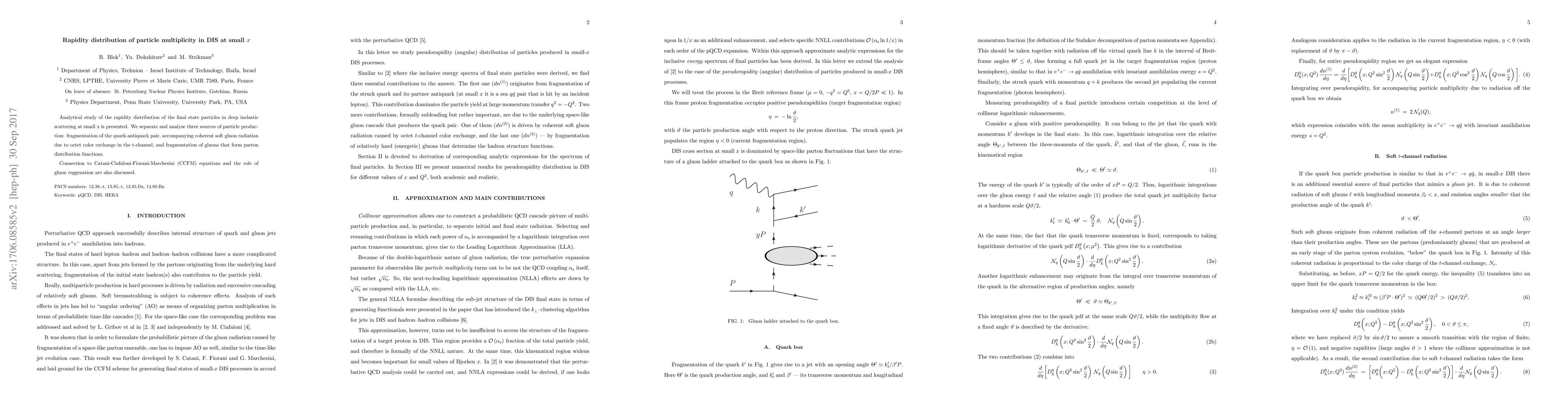 Researchers studied particle multiplicity in deep inelastic scattering at small x, identifying three sources of particle production: quark-antiquark pair fragmentation, soft gluon radiation, and gluon reggezation.
