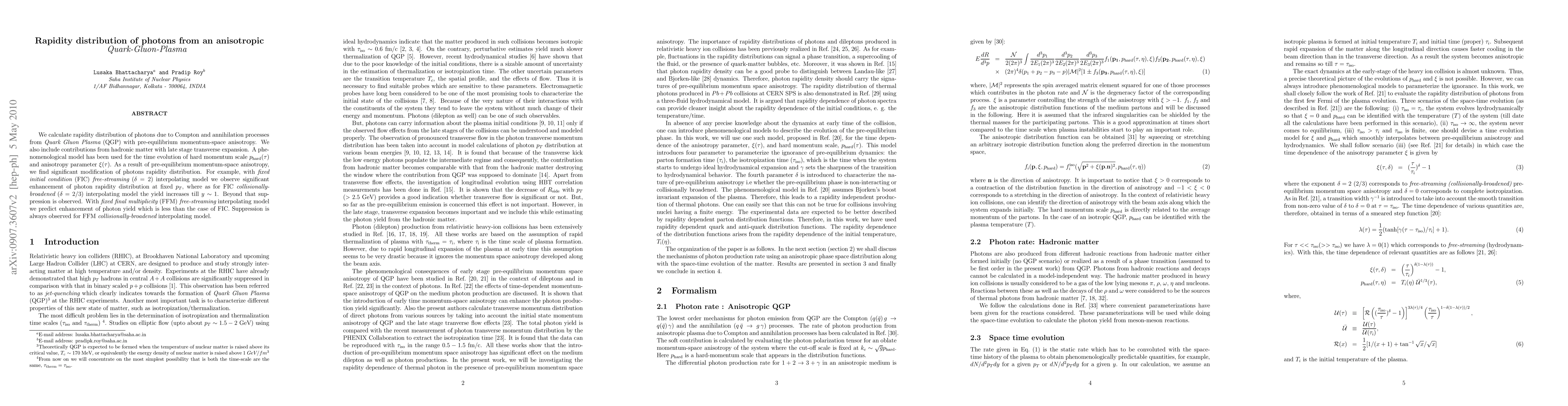 This paper investigates the rapidity distribution of photons from a Quark-Gluon Plasma (QGP) with initial momentum-space anisotropy, finding significant modifications due to pre-equilibrium conditions. The study reveals enhanced photon yields at certain rapidities depending on the chosen interpolating model, with suppression observed beyond specific rapidities.
