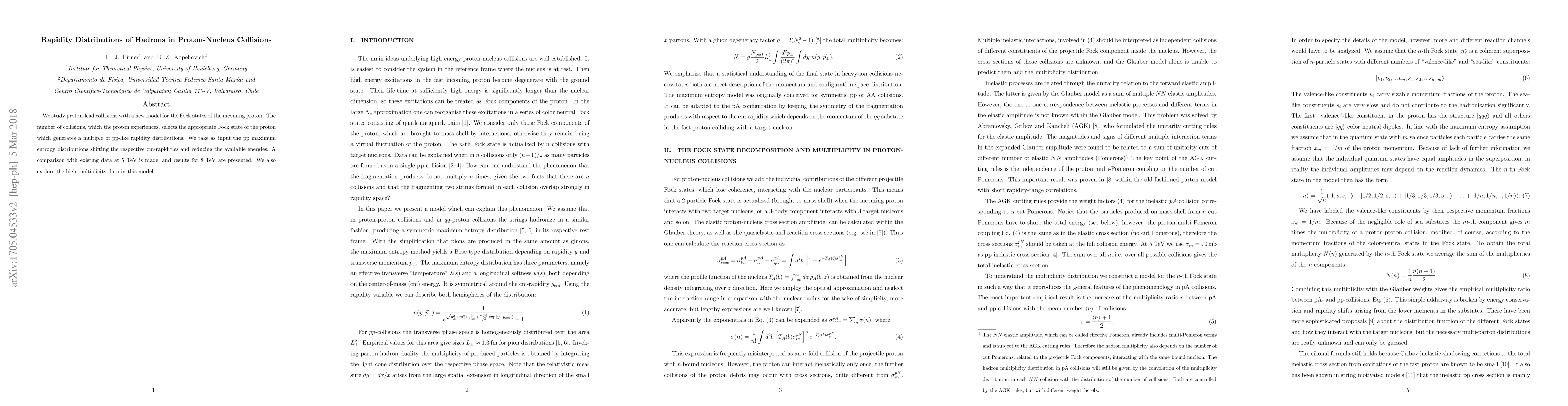 We study proton-lead collisions with a new model for the Fock states of the incoming proton. The number of collisions which the proton experiences selects the appropriate Fock state of the proton which generates a multiple of pp-like rapidity distributions. We take as input the pp maximum entropy distributions shifting the respective cm-rapidities and reducing the available energies. A comparison with existing data at 5 TeV is made and results for 8 TeV are presented. We also explore the high multiplicity data in this model.