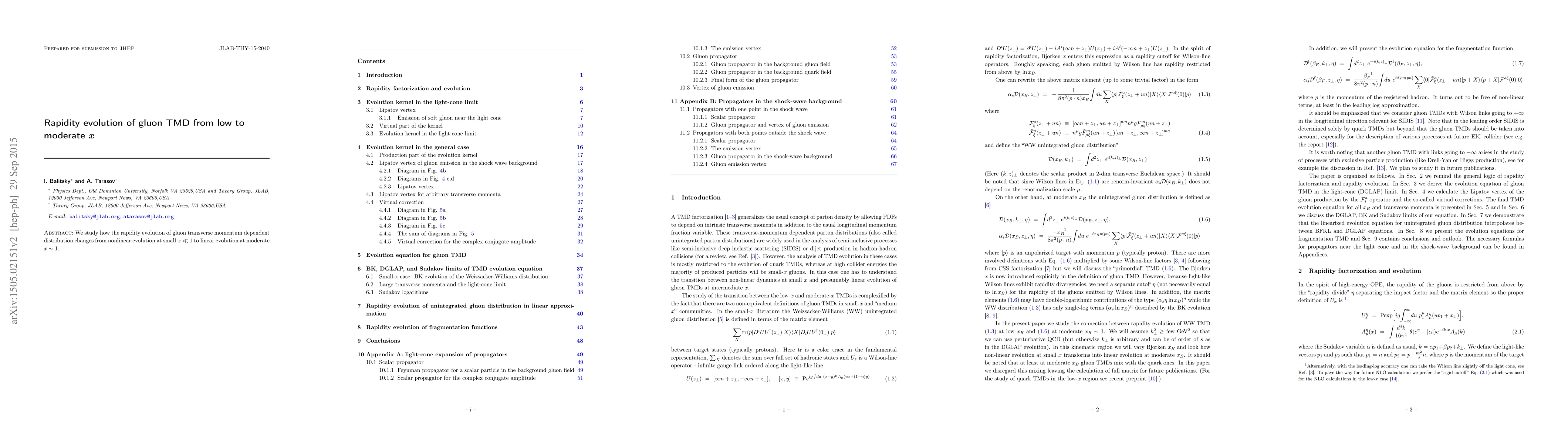 We study how the rapidity evolution of gluon transverse momentum dependent distribution changes from nonlinear evolution at small $x \ll 1$ to linear evolution at moderate $x \sim 1$.